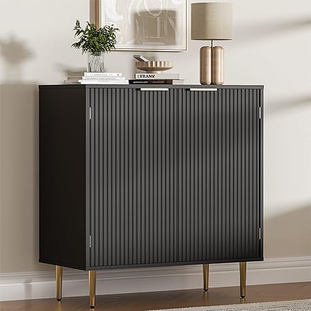 Buffet Sideboard Cabinet with 2 Doors, Kitchen Cabinet with Golden Handles & Legs, Modern Accent Cabinet with Adjustable Shelf, Coffee Bar Storage Cabinet for Kitchen, Dining Room, White