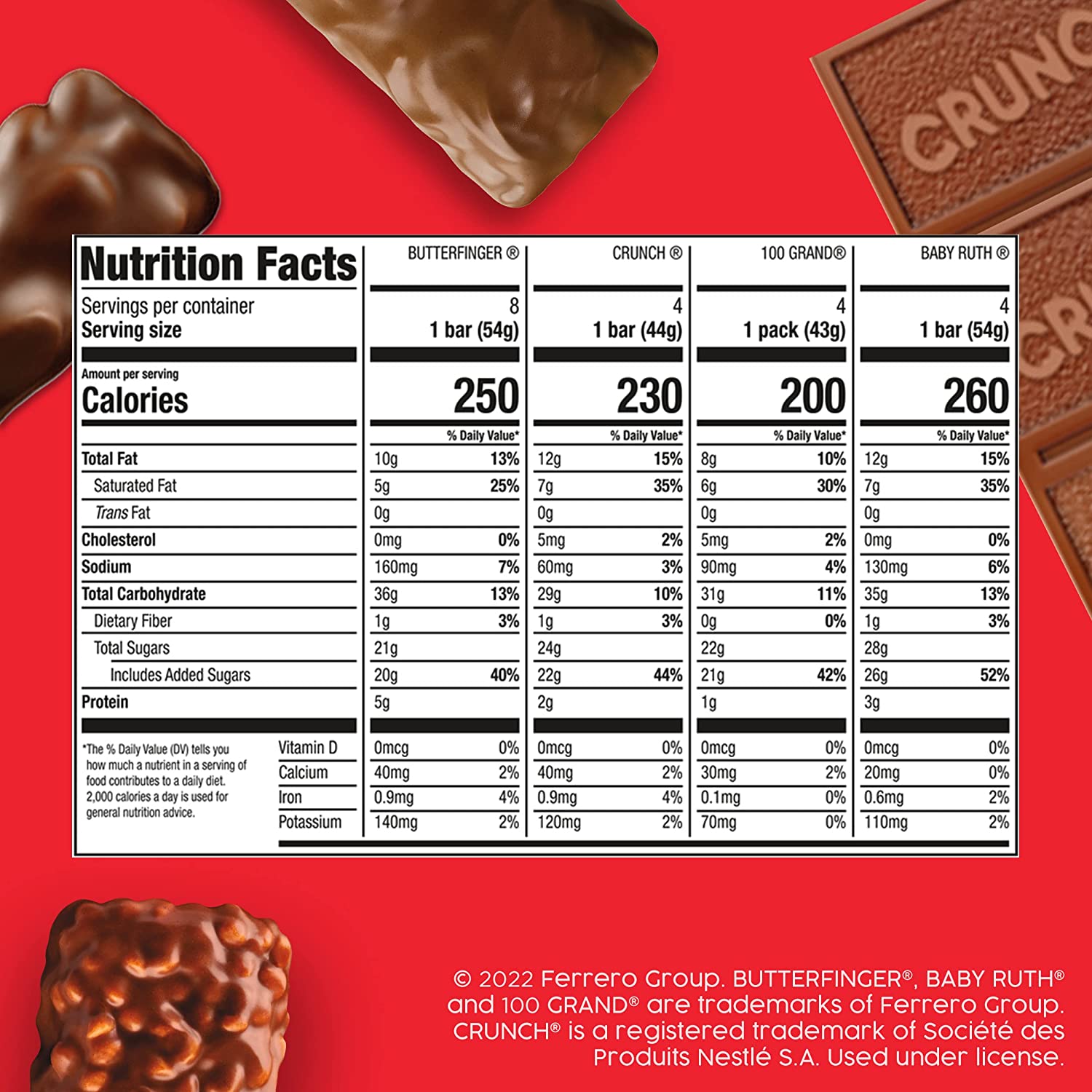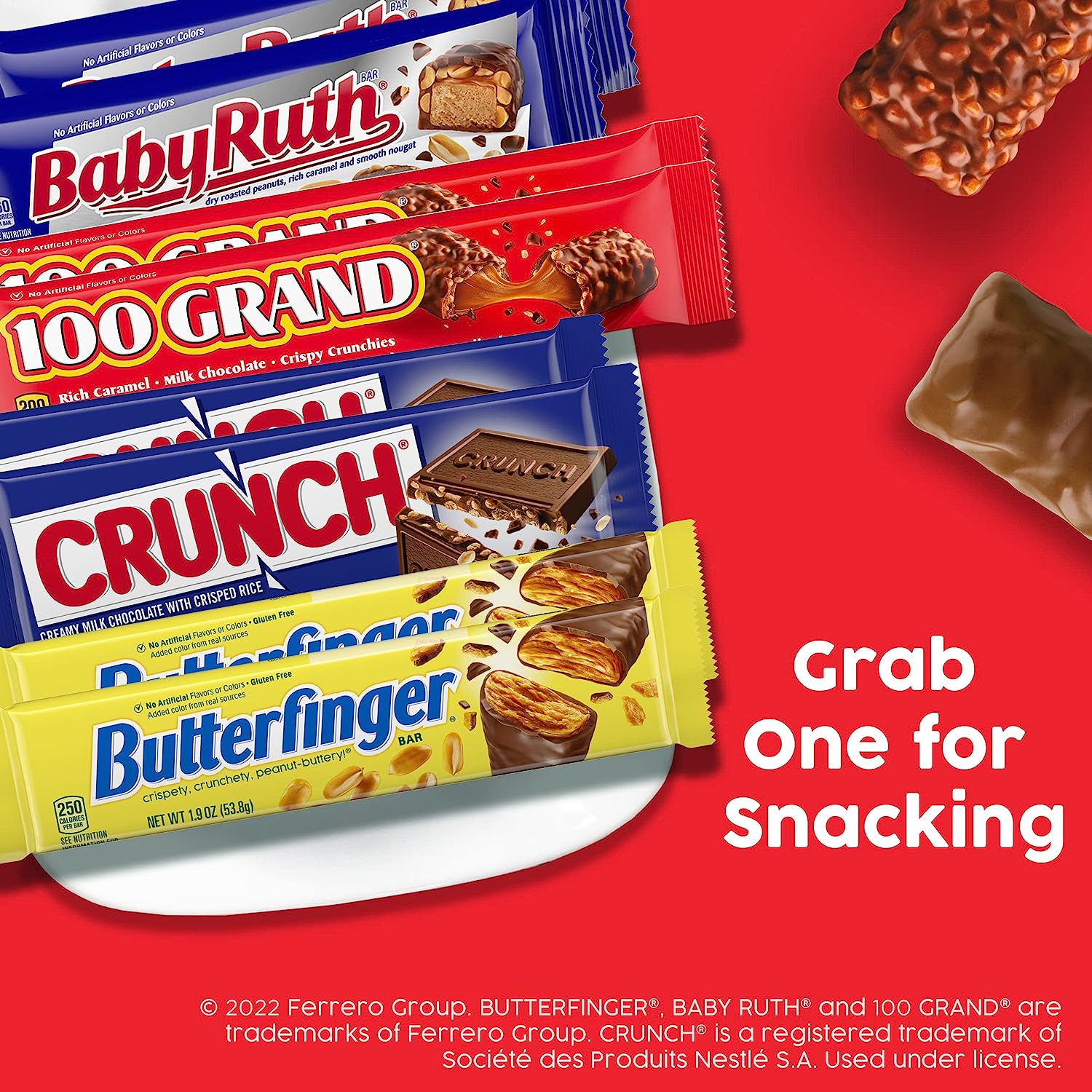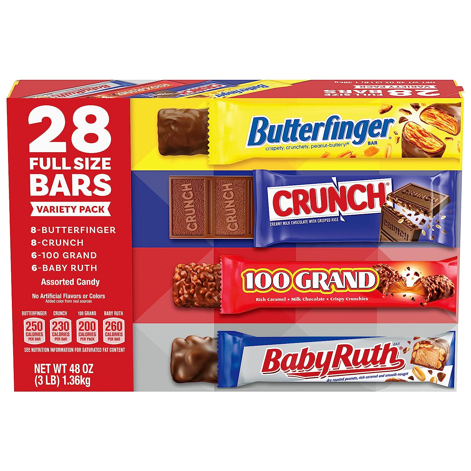 Cover all your bases with this assortment, featuring some of the world's favorite candy bars. With a variety of bars, there's something in there for everyone! This delicious assortment of candy bars features some of your favorite chocolate confections, throw a few in your pocket or purse to take their chocolatey goodness with you wherever.