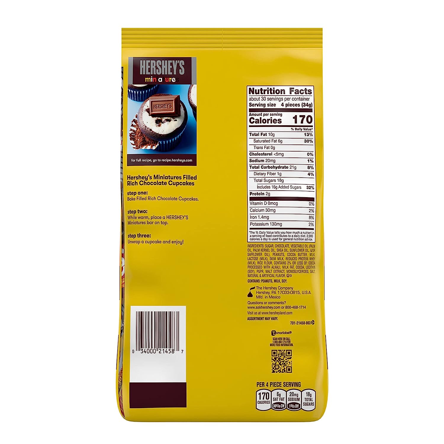 There's something for everyone in this HERSHEY'S Miniatures assortment. Find miniature versions of all your favorite HERSHEY'S chocolate bars in one sweet bag, including HERSHEY'S milk chocolate bars, HERSHEY'S SPECIAL DARK mildly sweet chocolate bars, KRACKEL chocolate candy with crisped rice and MR. GOODBAR chocolate candy with peanuts. Enjoy delicious candy classics individually wrapped for lasting freshness and convenience all year long. Perfect for lunch boxes, movie nights, game nights, snack breaks, sharing moments and candy dishes at home and in the office, these milk and dark chocolate miniatures will keep your snacking fun and simple. Give a variety of chocolates to your favorite people when you're in a generous mood. Want to take these treats a step further? Place a HERSHEY'S Miniatures chocolate bar on top of your best baked goods like cookies, cupcakes, brownies and more to please the crowd with your culinary genius! Add them to your holiday festivities, too! Stuff festive Christmas stockings, fill springtime Easter baskets, stock Halloween candy bowls and trick-or-treat bags and create adorable Valentine's Day gift boxes for everyone on your list. Make each holiday a little more special with the HERSHEY'S Miniatures assorted chocolate candy bars you already know and love.