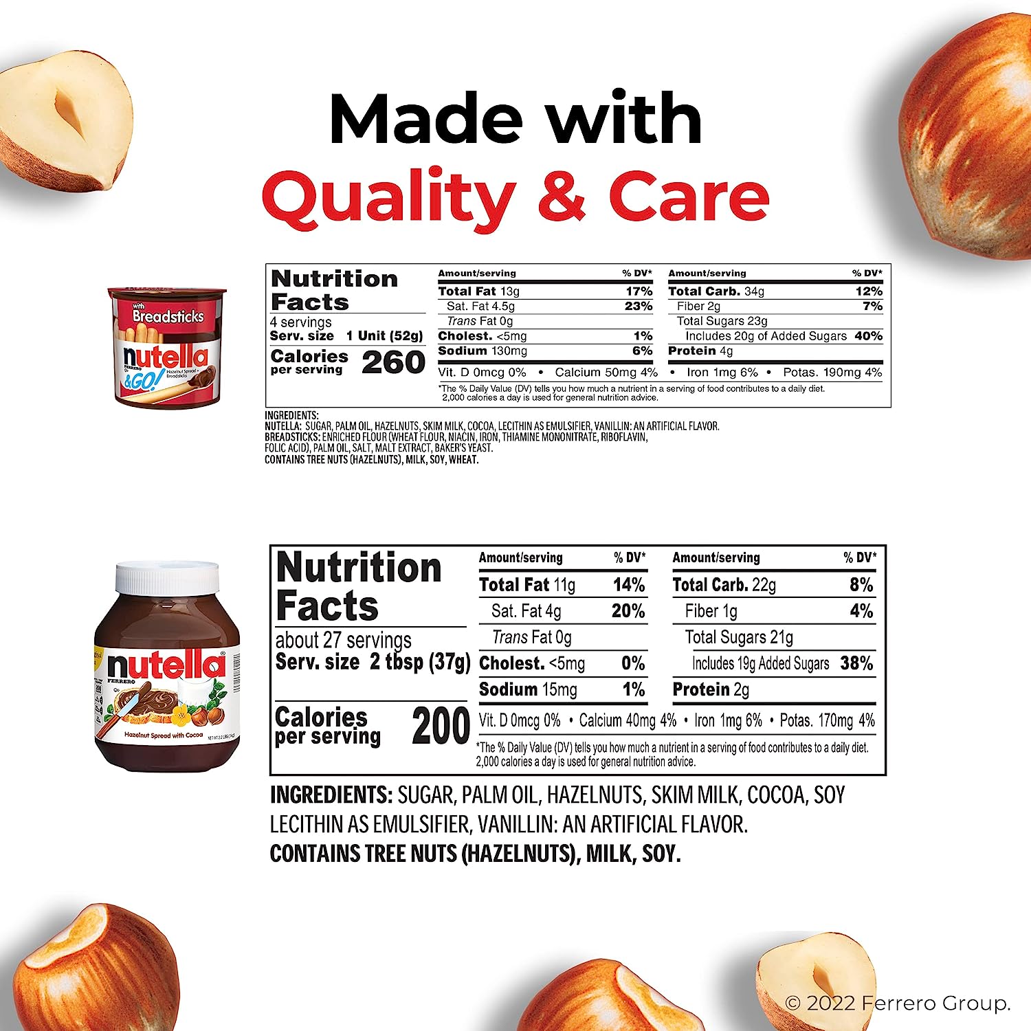 • DISCOVER DELICIOUSNESS: Each snack pack of Nutella contains the irresistibly creamy taste of the hazelnut spread with cocoa that you know and love, plus a serving of crispy breadsticks