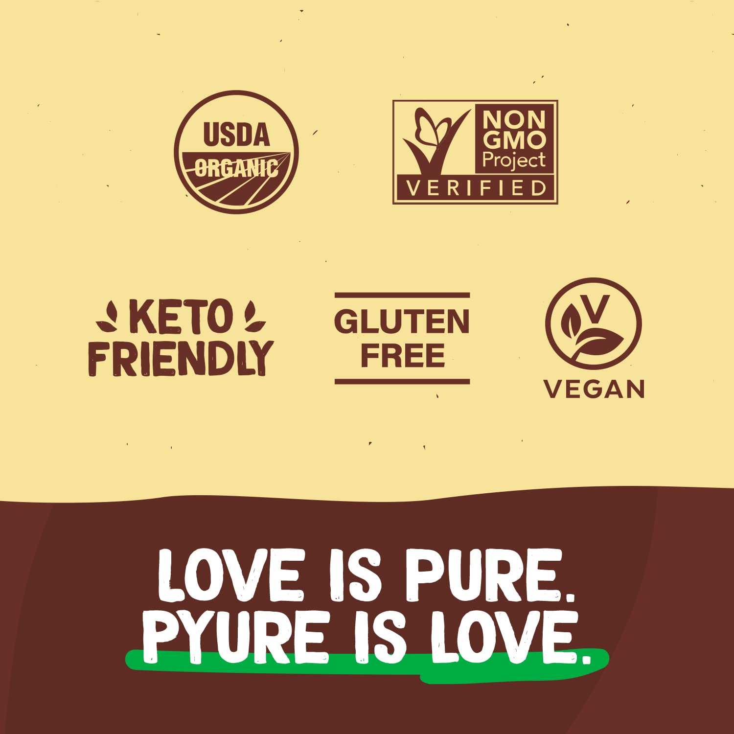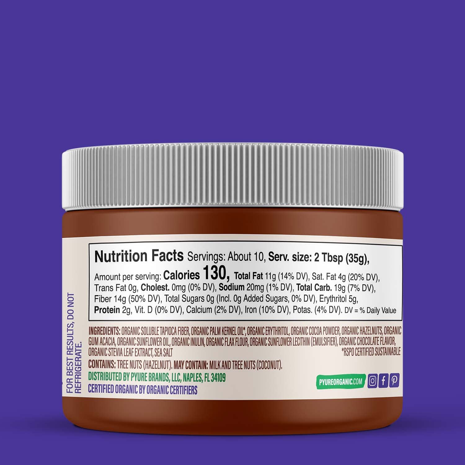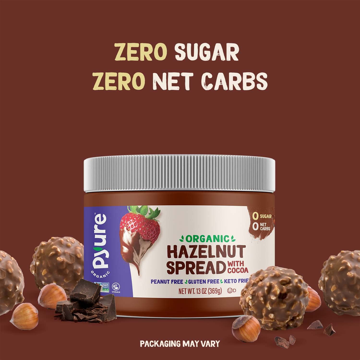 Pyure Organic Sugar Free Chocolate Hazelnut Spread is our latest and greatest ready to eat keto product. Our Organic Sugar Free Hazelnut Spread is a new and improved taste of organic hazelnut spread with zero sugar and zero net carbs. Pyure hazelnut spread offers the same taste and feel as traditional hazelnut spread without adding extra sugar, calories or carbs, keto sweeteners, and sugar alternatives (alternativas de azucar keto). Pyure Keto Hazelnut Spread is free from peanuts, gluten, and dairy. Pyure Hazelnut Chocolate Spread tastes great on keto bread and toast, dipped with fruit, and paired with your favorite keto friendly snacks, sugar free snacks, no sugar snacks, keto food products. Bake into brownies for keto baking, or better yet, spooned straight into your mouth! Pyure Keto Chocolate Hazelnut Spread contains zero sugar and no carbs making it the best organic hazelnut spread. Pyure uses organic hazelnuts and plant-based sweeteners consisting of the highest quality Organic Stevia Leaf Extract that is always USDA Organic Certified, and Non-GMO Project Verified. Enjoy your favorite keto sweets while keeping carbs low. Perfect for keto diet, diabetic, gluten-free, paleo, vegan, plant-based, candida, low carb, and low to no sugar lifestyles. Pyure Hazelnut Butter a great addition to your keto friendly food & sugar free snacks pantry. The ideal hazelnut spread for those with sugar sensitivities that are in need of sugar free keto sweets, keto snacks zero carb no sugar, and vegan sweets. Pyure is the result of our passion for creating products of uncompromising quality and exception flavor. Pyure is our gift to you. Other tasty products by Pyure include: Organic Stevia Blend, Organic Powdered Sweetener, Organic Liquid Stevia Sweetener, Organic Monk Fruit Sweetener, Organic Brown Sweetener, Organic Stevia Leaf Extract, Organic Hazelnut Spread, Cookie Mix, Brownie Mix, Organic Chocolate Drink Mix, and Organic Maple Syrup, Organic Chocolate Syrup, and Organic Caramel Syrup.