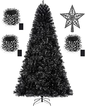 7.5ft Black Christmas Tree Artificial Christmas Tree Halloween Tree Decorations with 1, 450 Tips-1pcs Treetop Star 3 Set 300 Led String Lights, Pencil Christmas Tree Indoor Holiday Party Decorations
