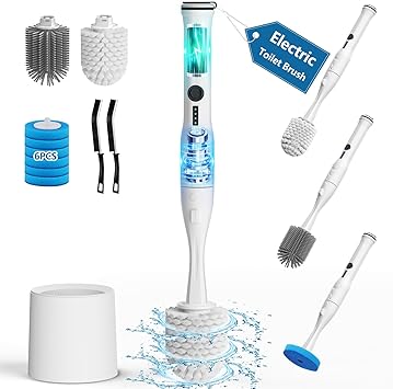 Electric Toilet Brush and Holder Set, Leebein 8 in 1 Electric Toilet Bowl Cleaning Kit with 8 Replaceable Brushes, Hard Nylon Brush and Soft Silicone Brush, 6 Refills Disposable Cleaner Brush