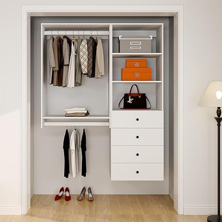 55In Closet System, Built-In Storage System Closet System with Drawers, White Closet Storage Systems for Walk In Closets Wardrobe with Closet shelves, 55" L x 17" W x 71" H