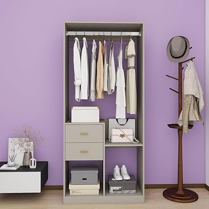 Closet System with Drawers and Shelves - Freestanding Walk-in Closet Organizer with 2 Drawers and Luggage Rack, Ideal for Walk-in Closets, Gray, 31.5" x 16" x 71"