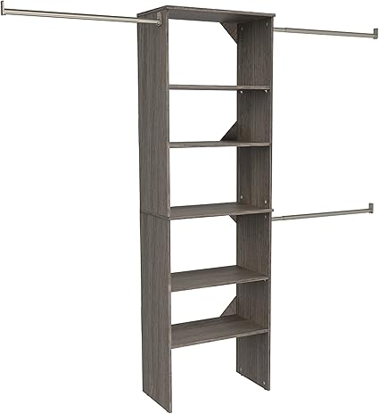 ClosetMaid SuiteSymphony Wood Closet Organizer Starter Kit with Tower and 3 Hang Rods, Shelves, Adjustable, Fits Spaces 5 _ _ 10 ft. Wide, Graphite Grey