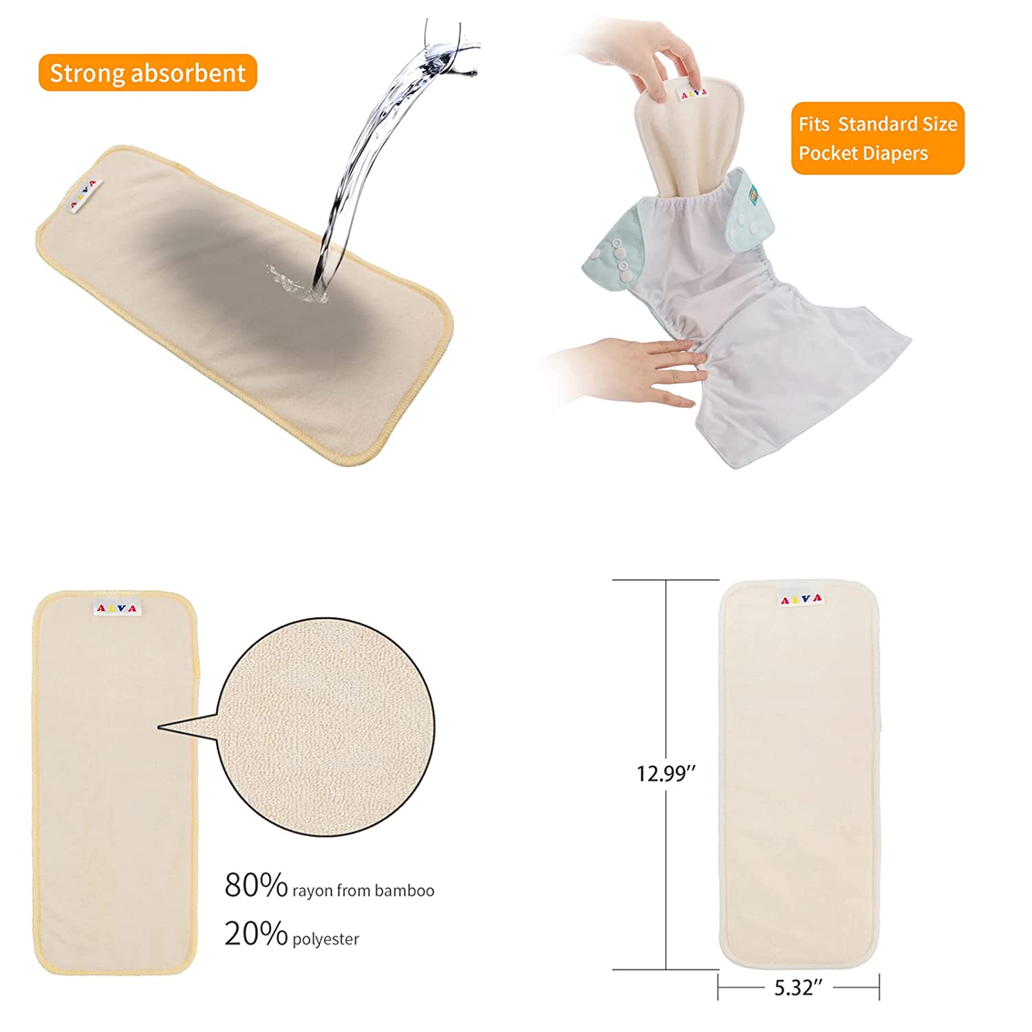 • HIGH QUALITY, ADJUSTABLE, REUSABLE & WATERPROOF -Outer layer: polyester with waterproof and breathable TPU .It's convenient for mammy to carry baby while taking a walk or doing chores. Inner layer: suede cloth inside, it does not hold moisture itself ,the moisture get drawn away to the insert to keep your baby dry . Insert: each diaper would come with two 3-layer microfiber inserts. Insert dimension approx 13.7” x 5.5”