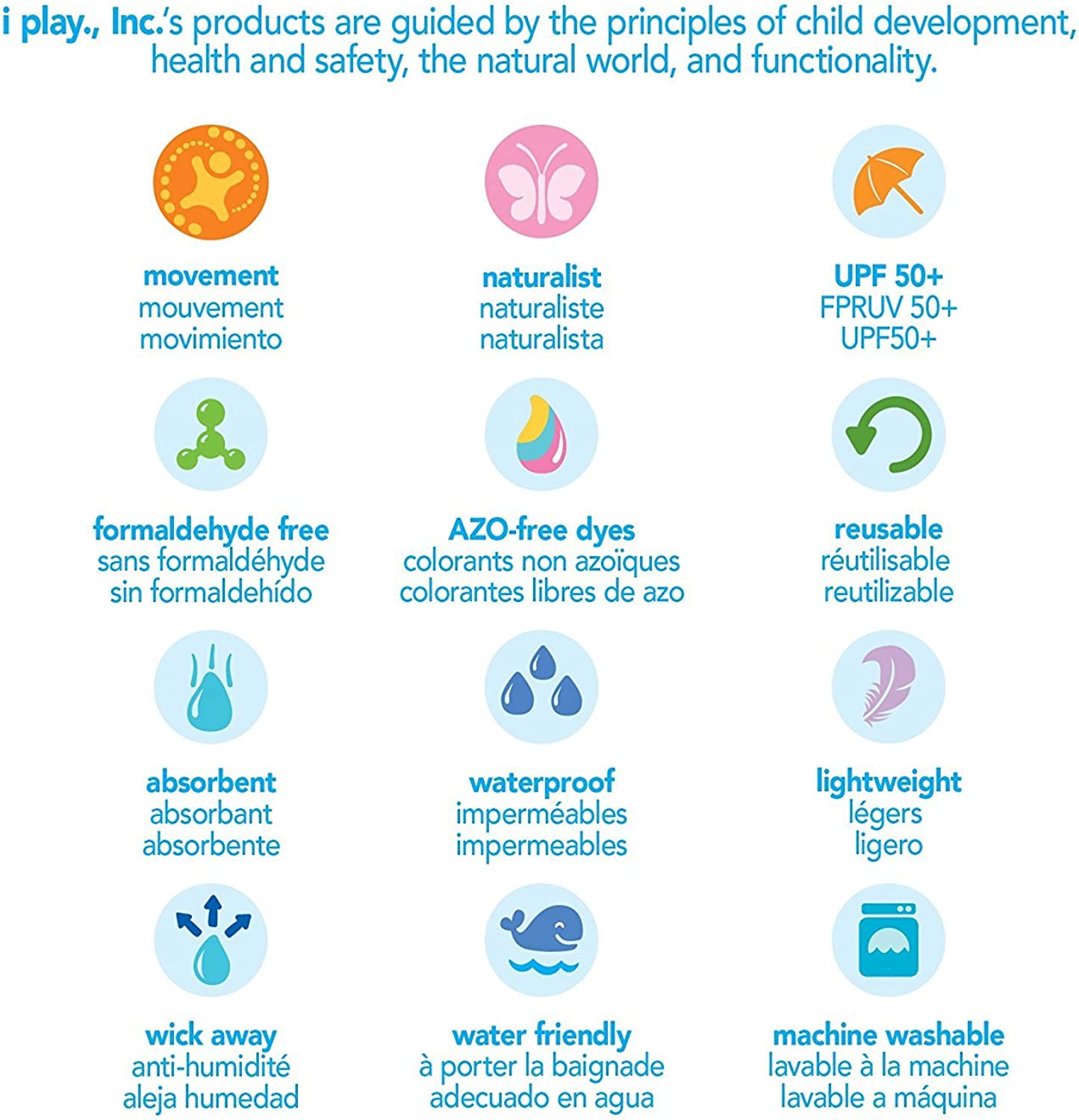 i play. is the original reusable swim diaper manufacturer and has a patented three-layer design. The wicking liner helps prevent diaper rash, the inner absorbent layer helps protect against messes outside the pool, and the waterproof outer layer works with the snug-fitting waist and legs to provide secure protection from unsanitary and embarrassing accidents in the pool.