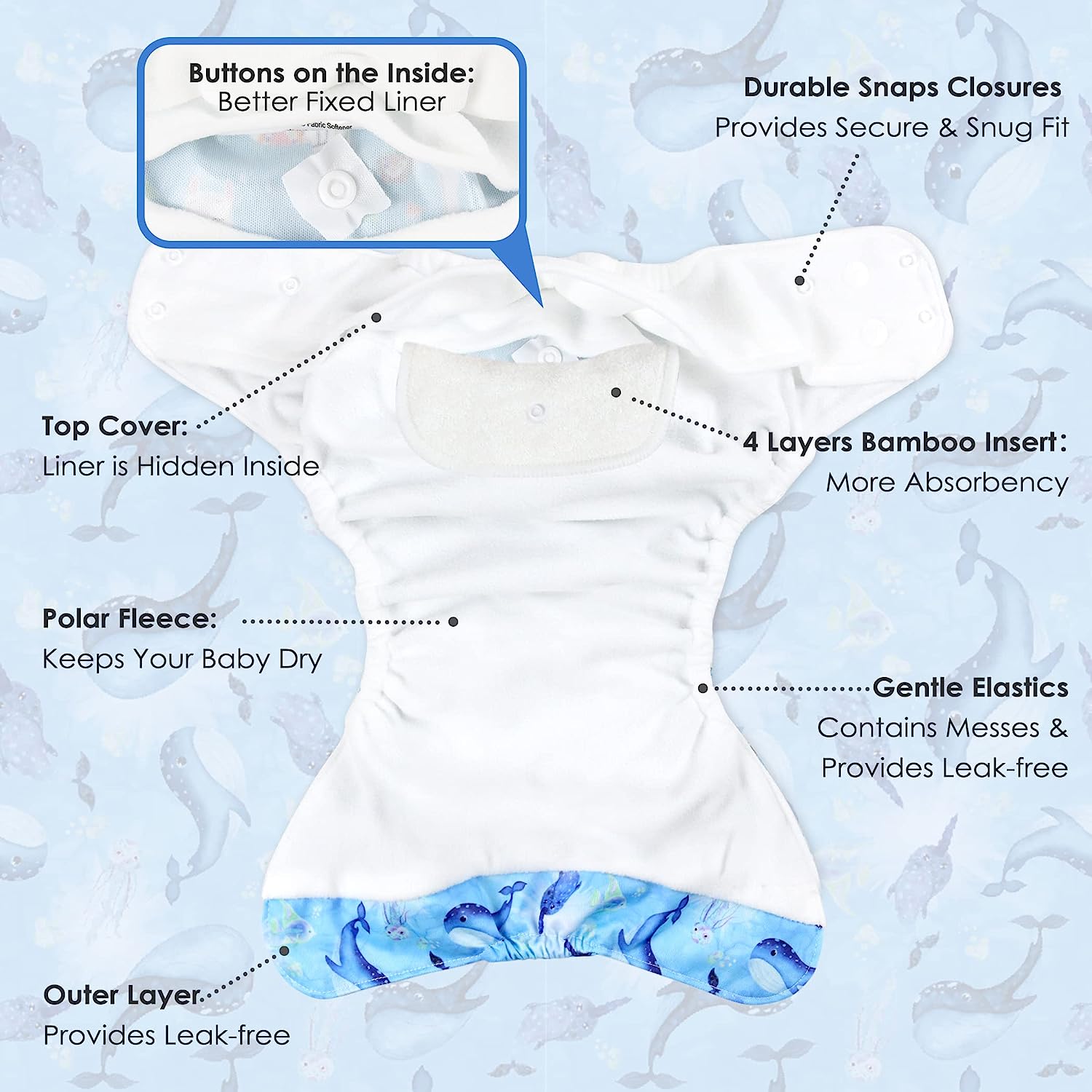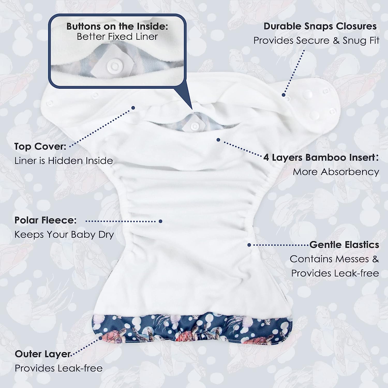 • Reusable & Washable: As disposable nappies are not great for our planet, these reusable, super-absorbent cloth diapers are an ideal choice, they will last you for a much longer period of time. No need to stock and store multiple size diapers. A great idea for your baby and our planet.