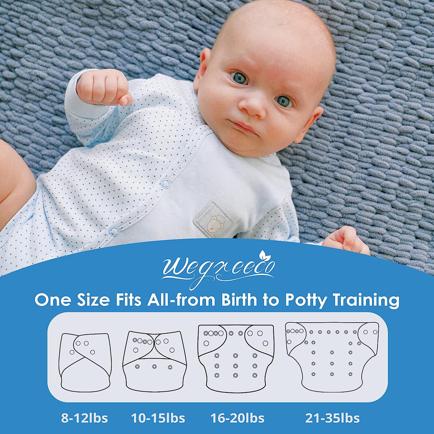 • One Size Adjustable Diaper: Four rows of adjustable snaps to allow for a small, medium,large size in one diaper. Usually fit 0-2 years' baby. If you are looking for a pocket diaper to last through your baby’s infancy, toddlerhood and even future babies. Wegreeco baby diapers grow with your baby..