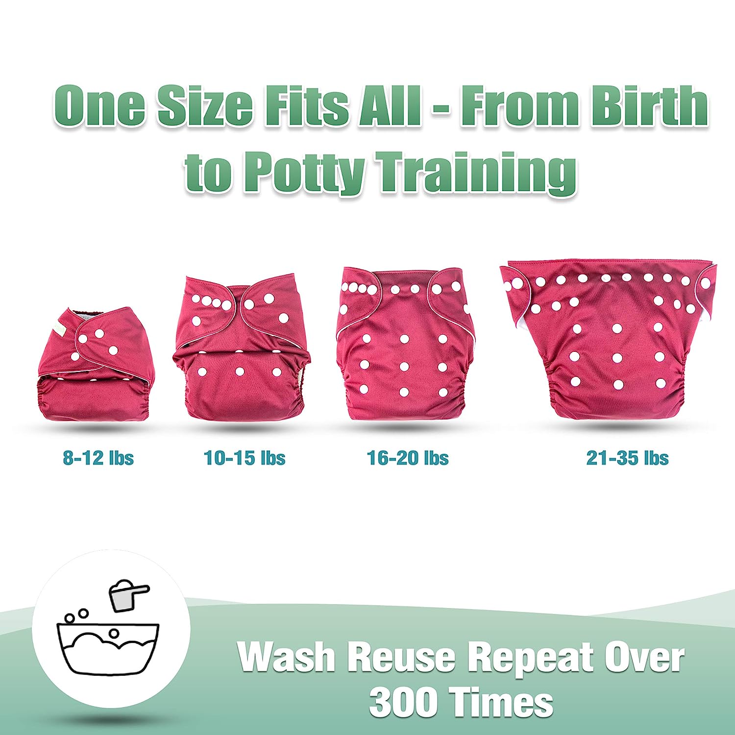 • Reusable & Washable: As disposable nappies are not great for our planet, these reusable, super-absorbent cloth diapers are an ideal choice, they will last you for a much longer period of time. No need to stock and store multiple size diapers. A great idea for your baby and our planet.