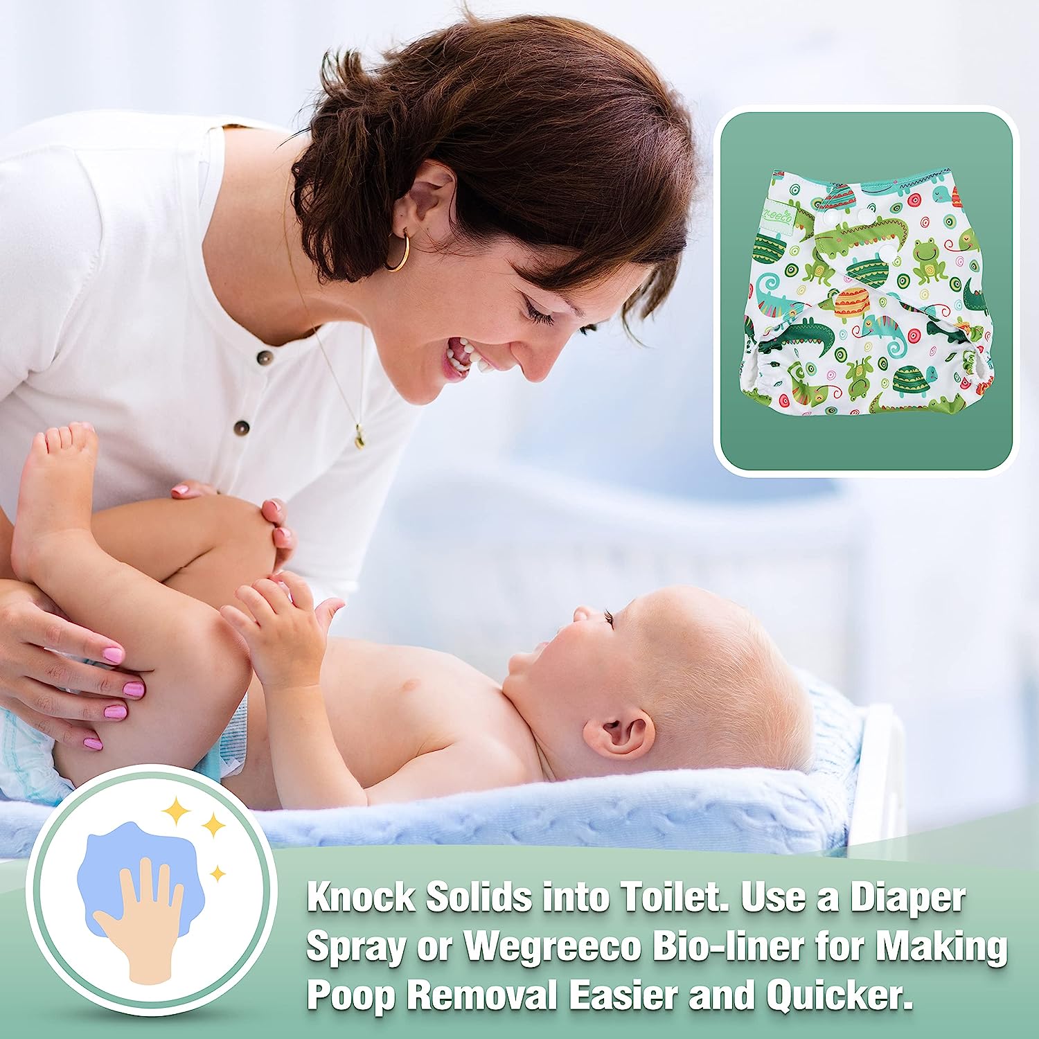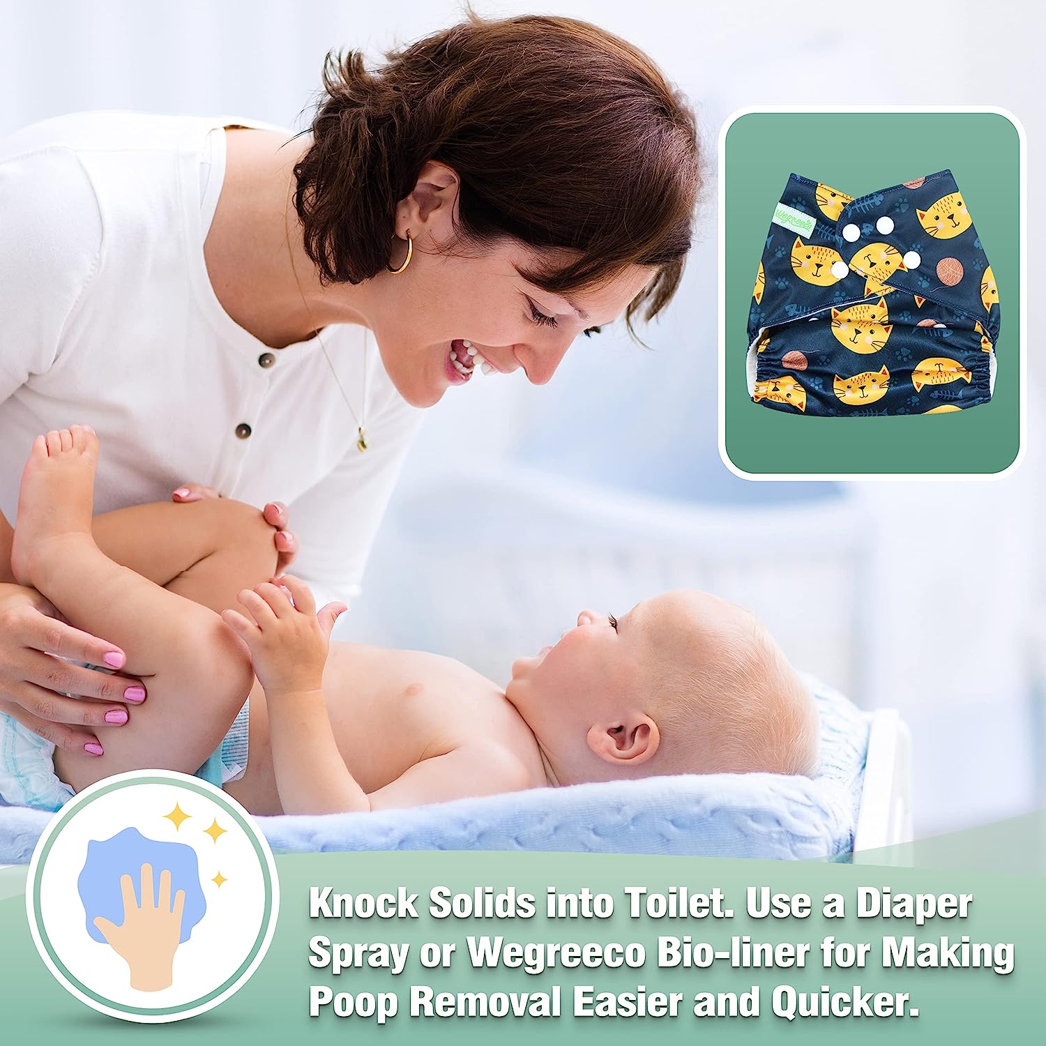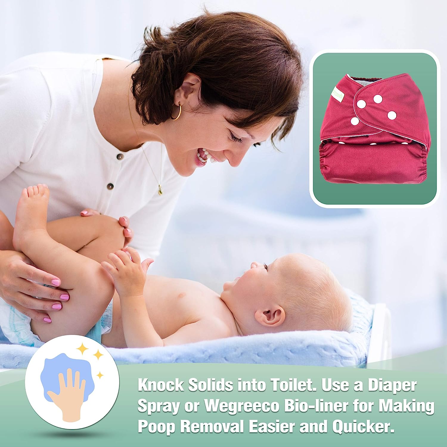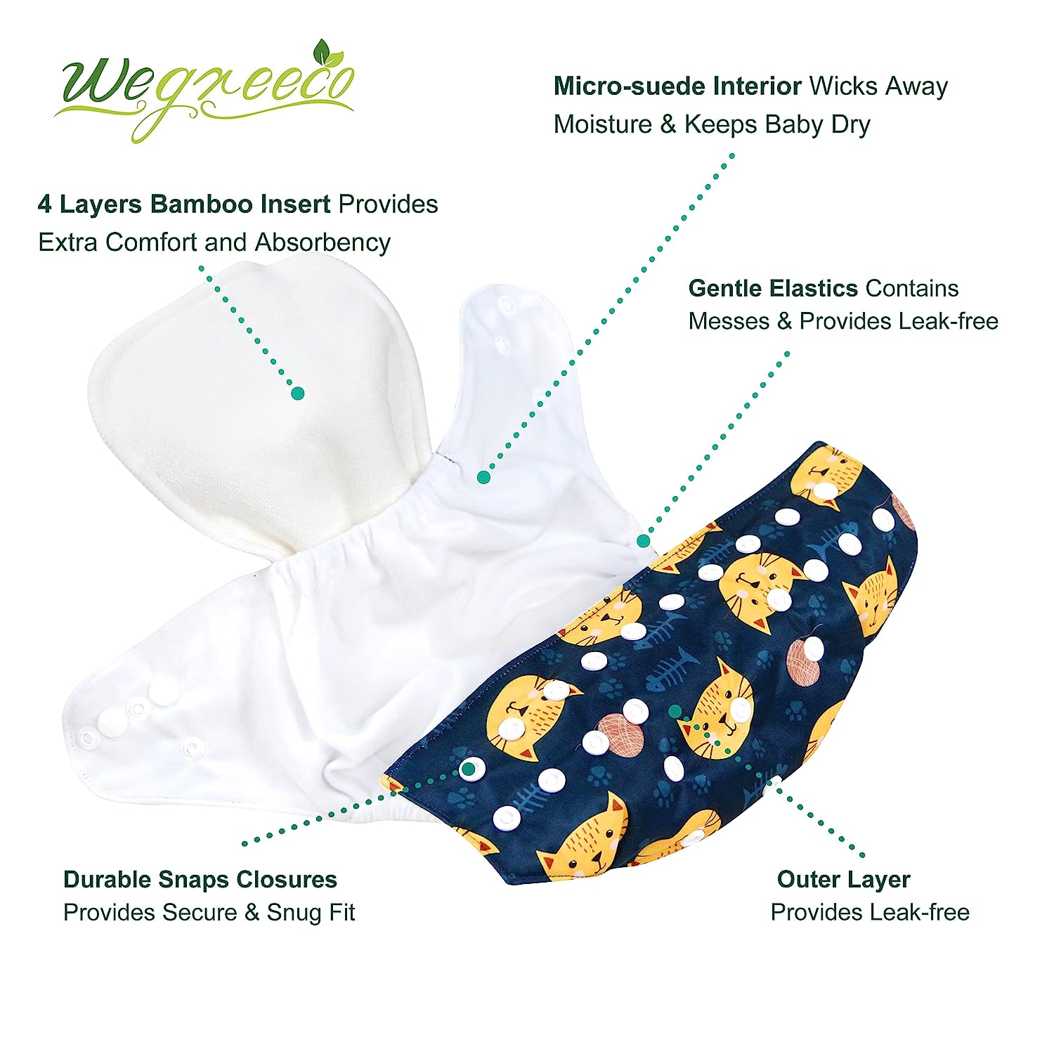 • One Size Adjustable Diaper: Three rows of adjustable snaps to allow for a small, medium,large size in one diaper. Usually fit 0-2 years' baby. If you are looking for a pocket diaper to last through your baby’s infancy, toddlerhood and even future babies. Wegreeco baby diapers grow with your baby.