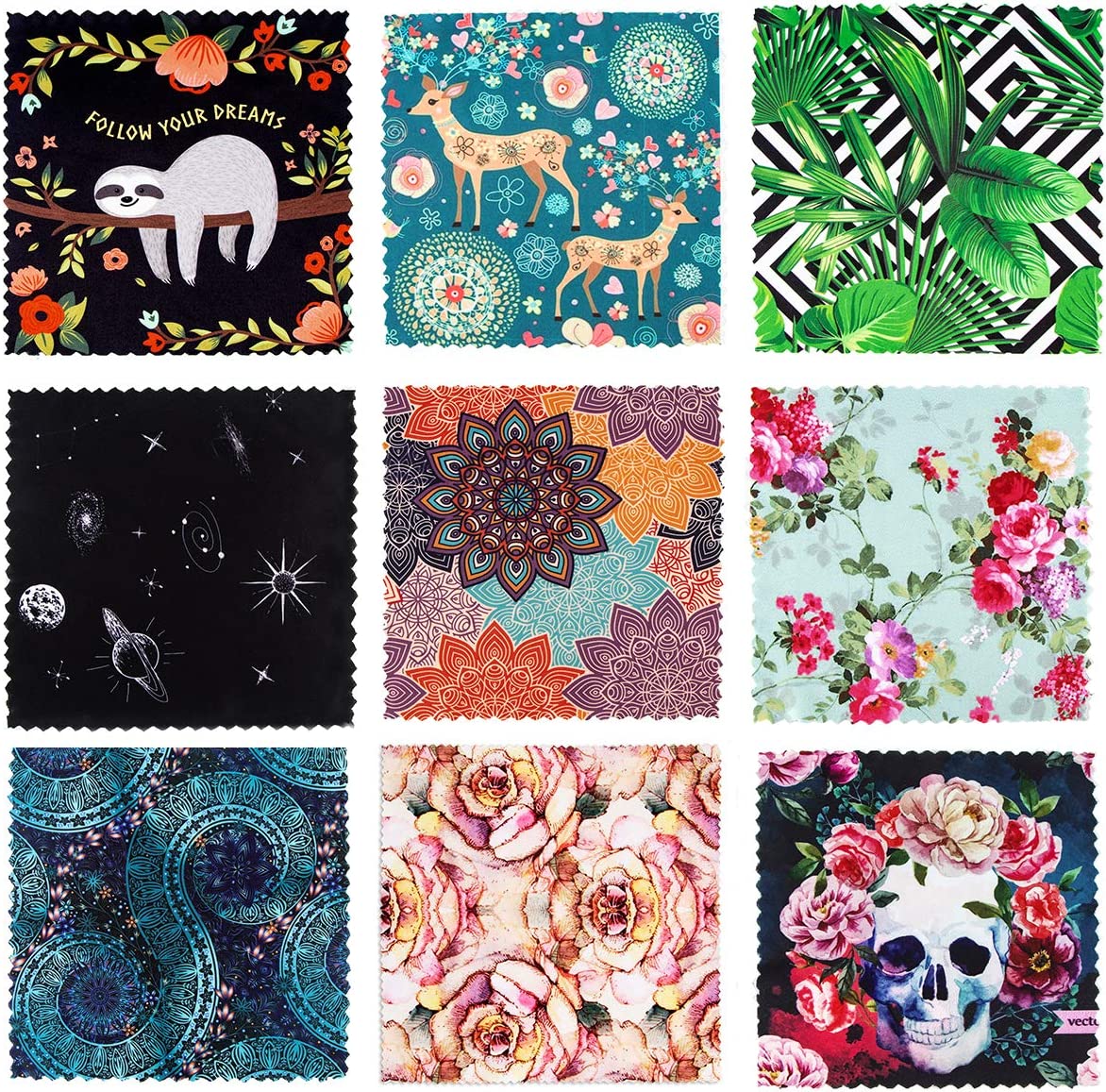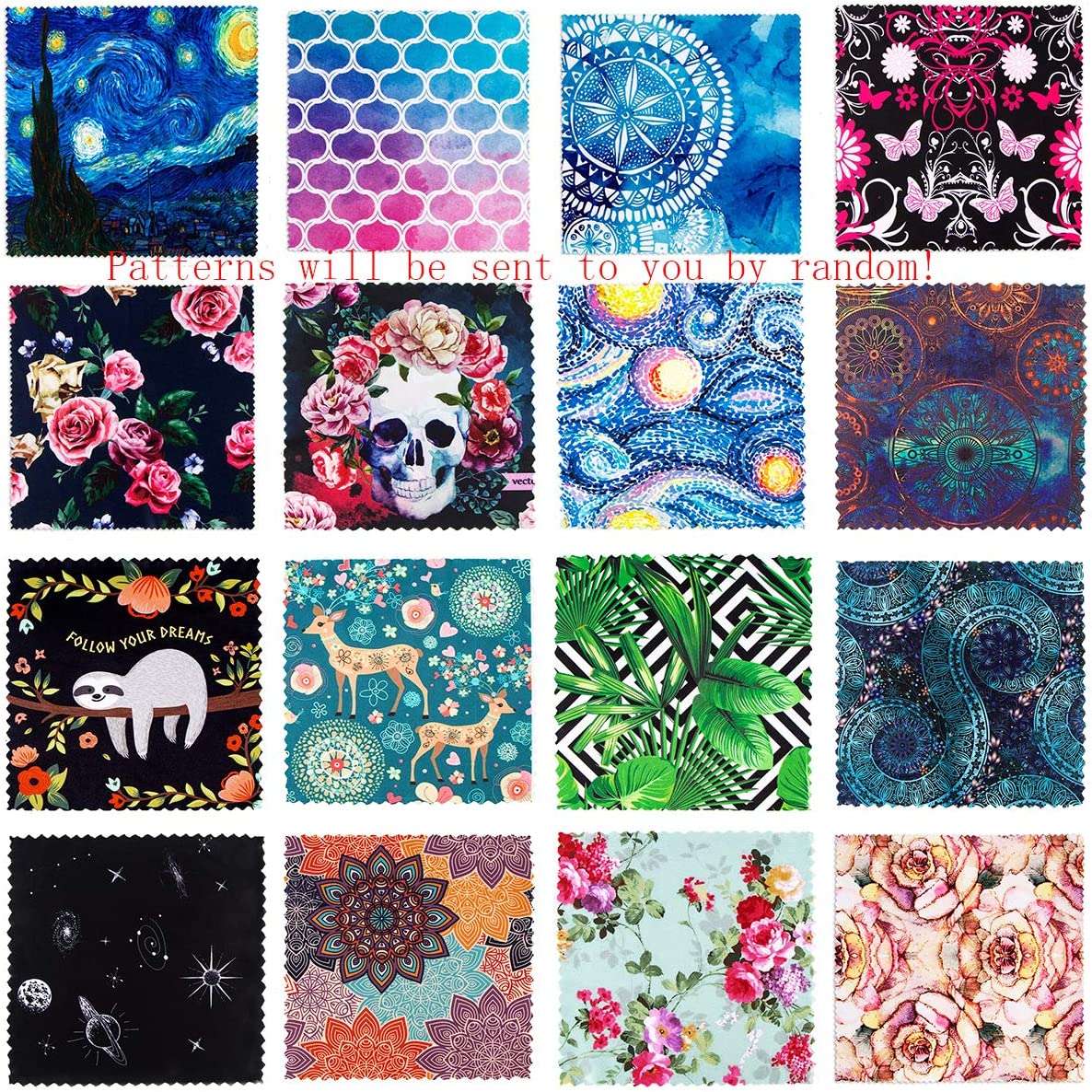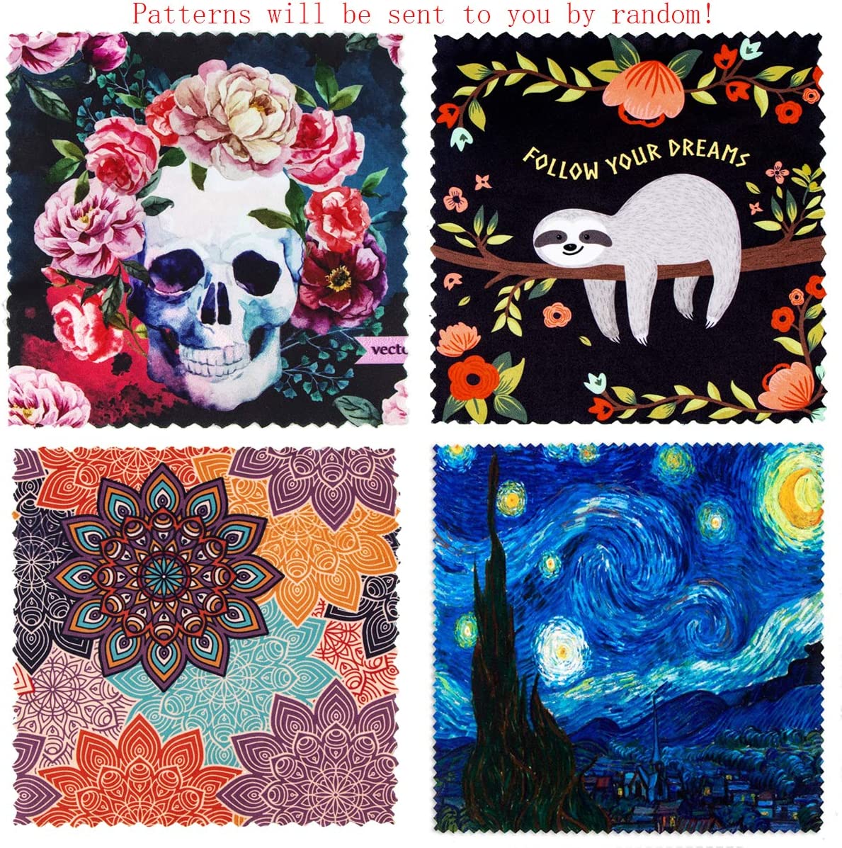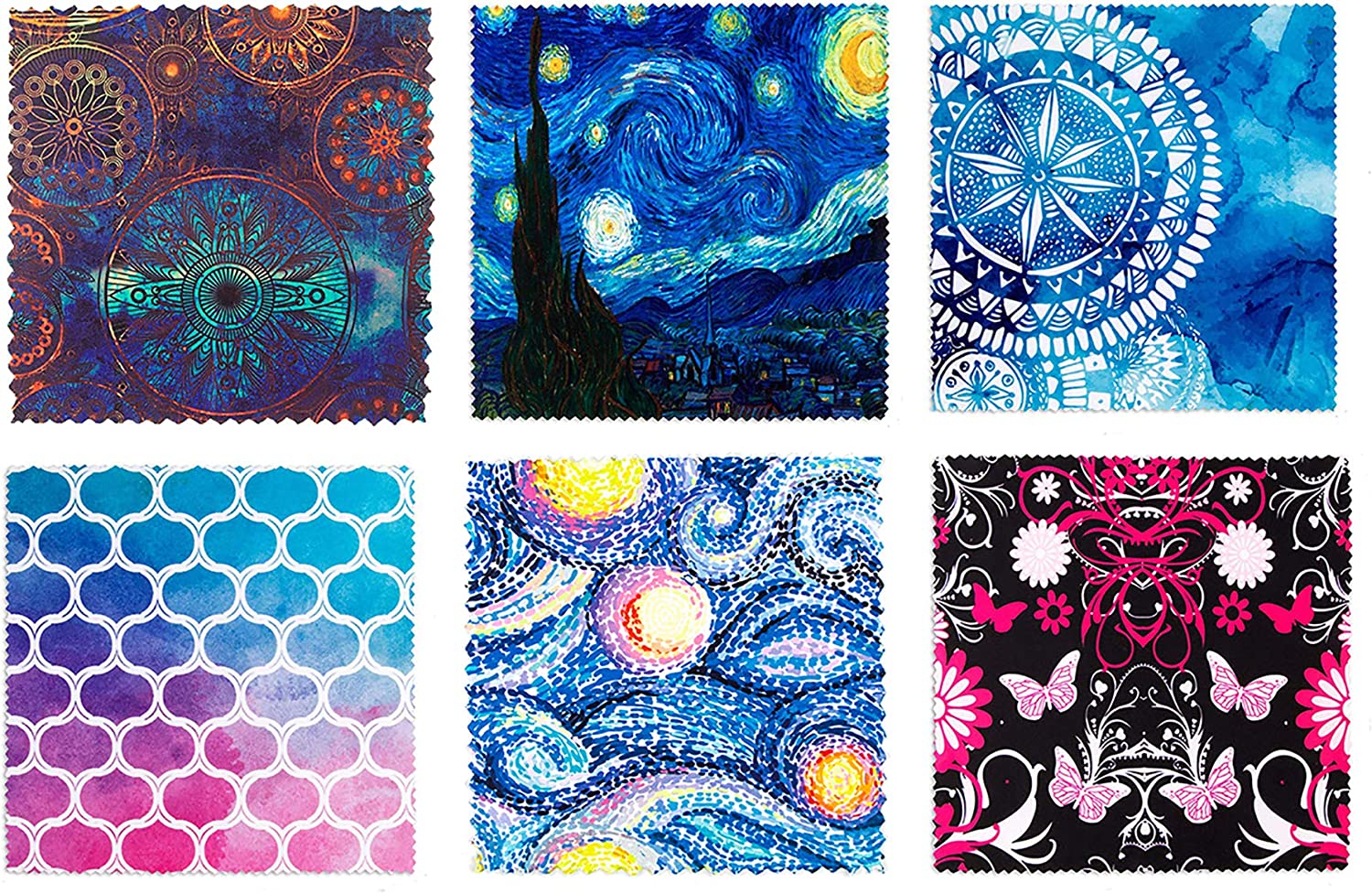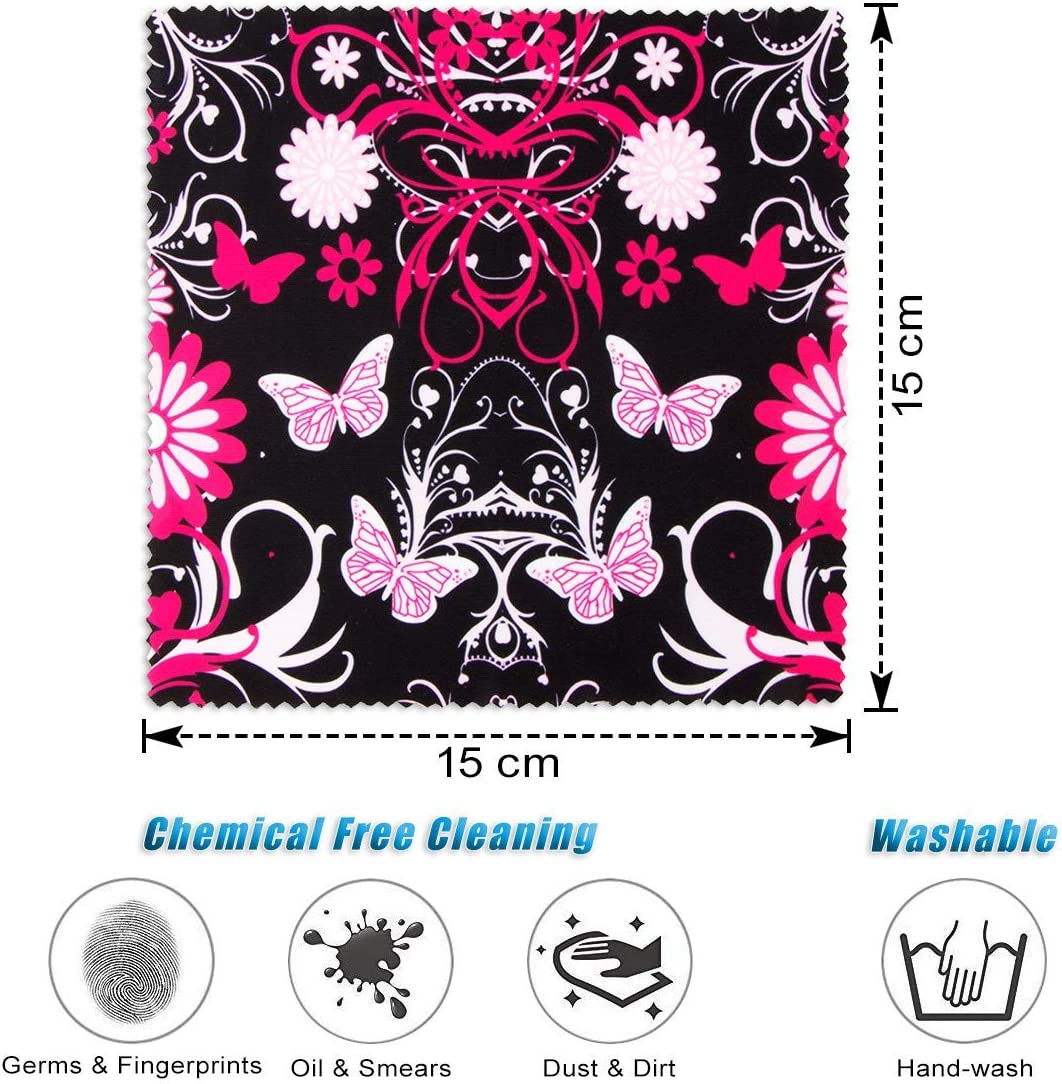 Pattern Printed Soft Microfiber Cleaning Cloths 6 Pieces for Eyeglasses, Camera Kens, Cell Phones, CD, DVD, Computers, Tablets, Laptops, Telescope, LCD Screens and Other Delicate Surfaces Cleaner