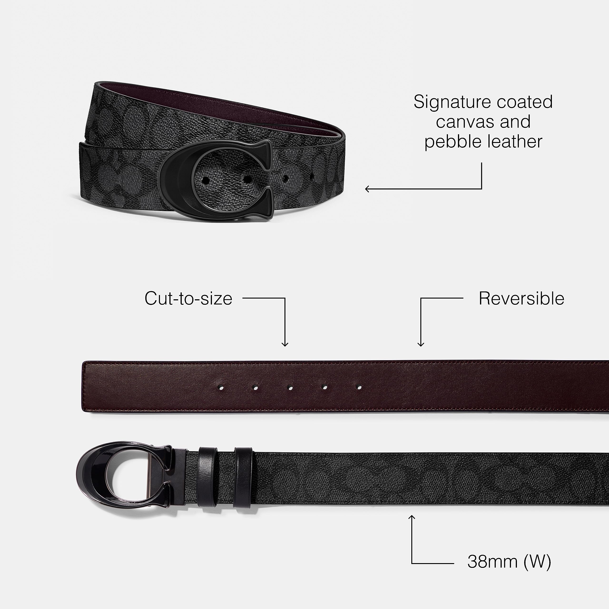 Coach 38 Mm Cts Reversible Resin Inlay C Buckle Signature Belt, Charcoal/Oxblood, One Size