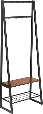 Amazon Basics 9 Hooks Coat Rack, Hallstand Entryway Shoe Bench with Metal 1-Tier Shelf, 13"D x 27.6"W x 69"H, Black