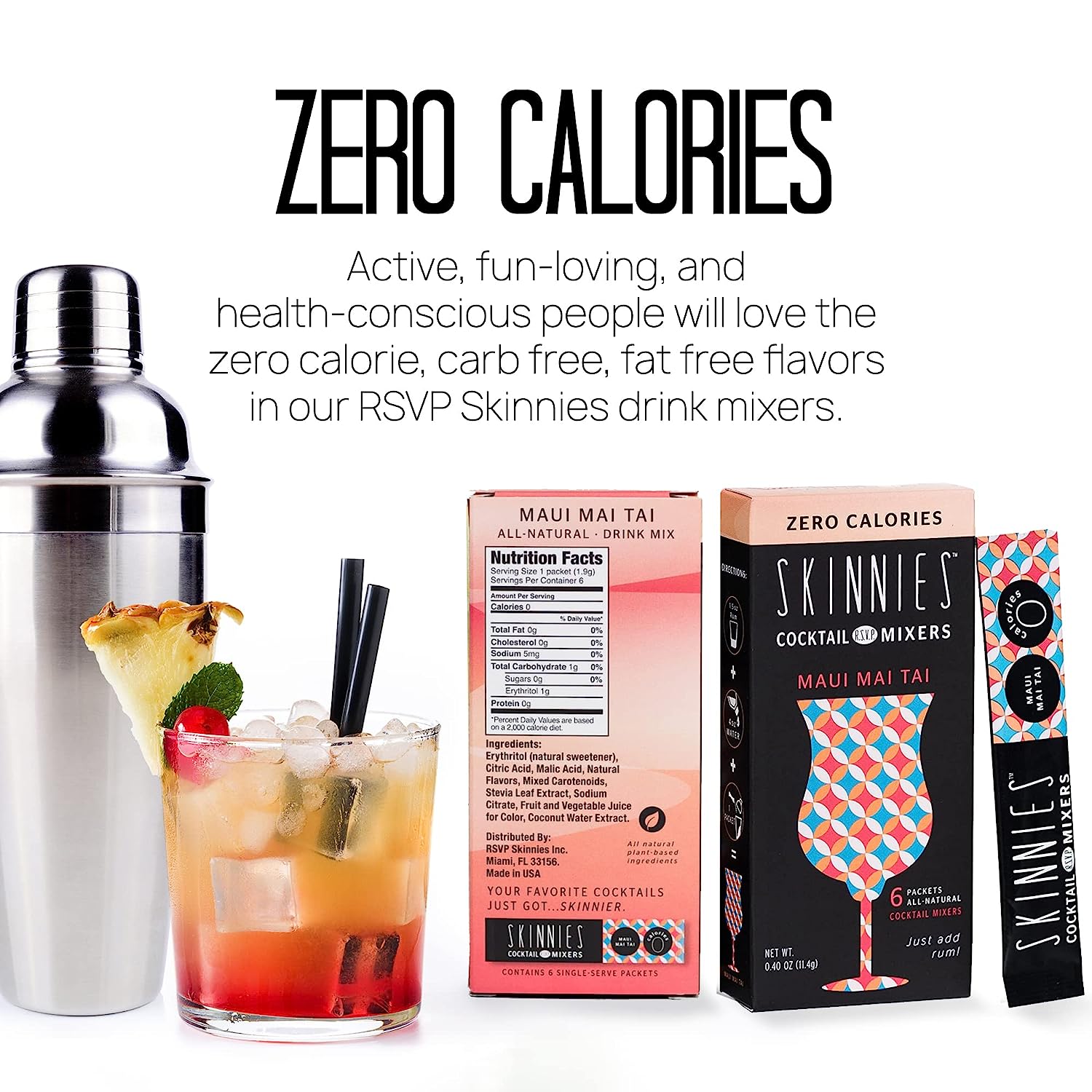 • ZERO CALORIES: Active, fun-loving and health conscious people will love the zero calorie, carb free, fat free flavors in our RSVP Skinnies mixers. These aren’t just low calorie cocktail mixers - they have no calories at all! If your watching your weight, or want a better alternative vs. traditional mixers that are loaded with sugar and artificial ingredients, we’re here for you!