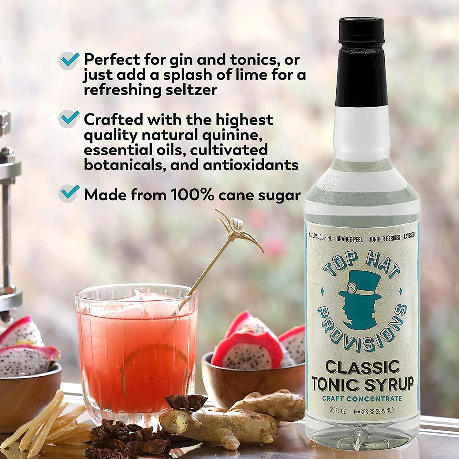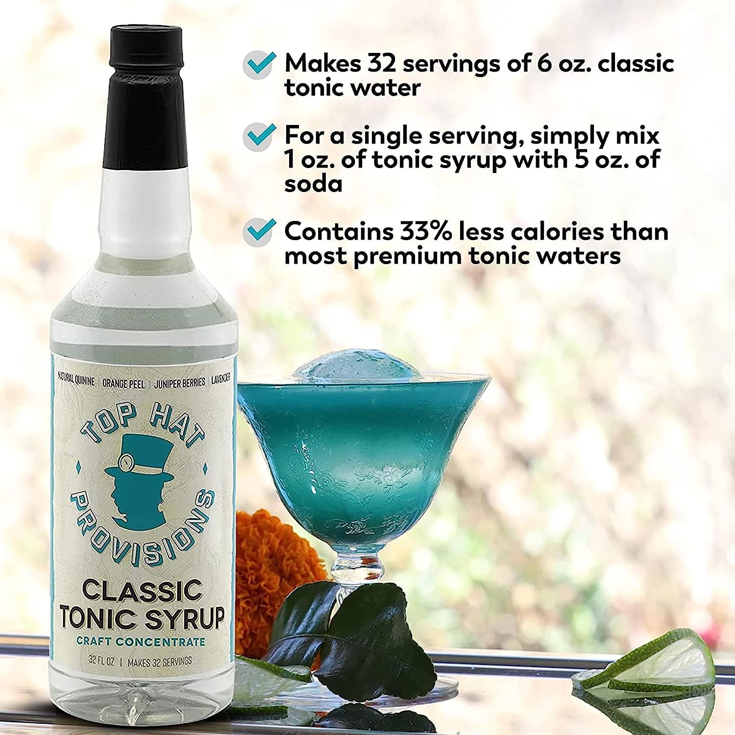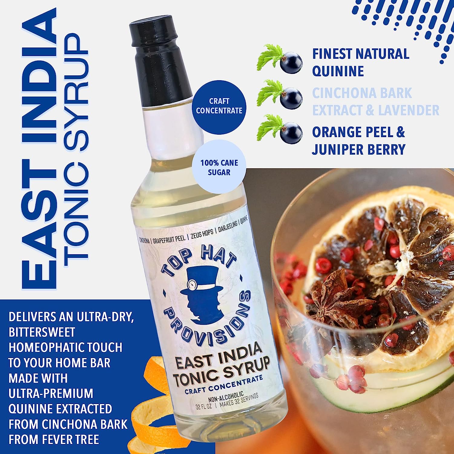 Top Hat East India Craft Concentrated Quinine Tonic Drink Syrup - 5X Natural Quinine Concentrate - Just Add Club Soda - 32oz Bottle