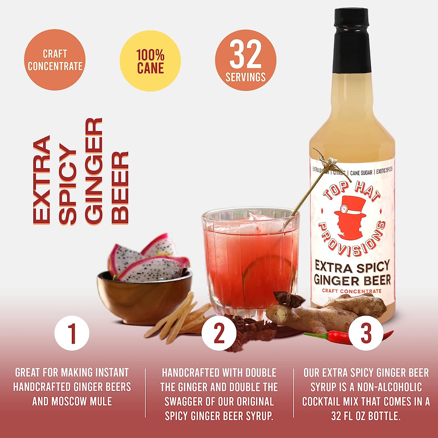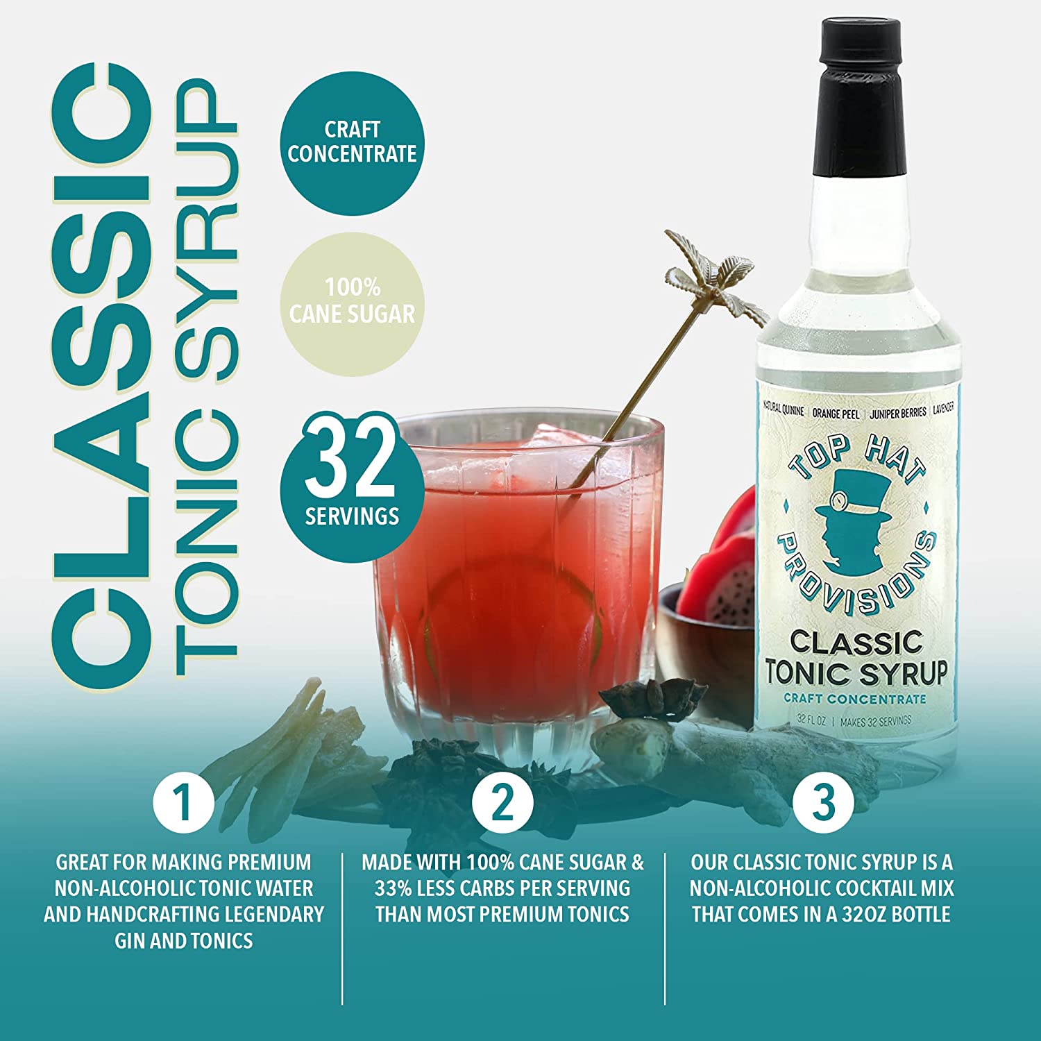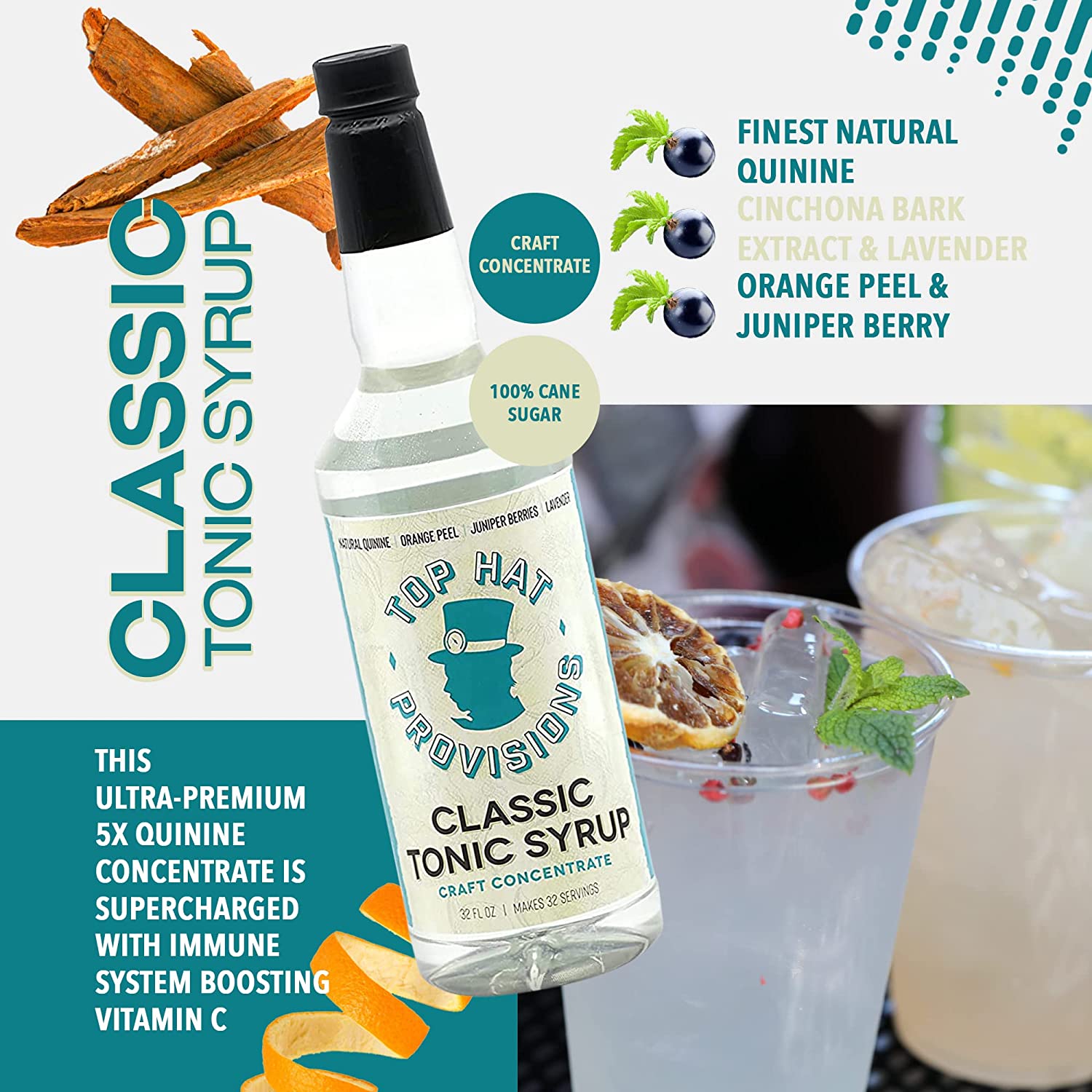 Top Hat East India Craft Concentrated Quinine Tonic Drink Syrup - 5X Natural Quinine Concentrate - Just Add Club Soda - 32oz Bottle