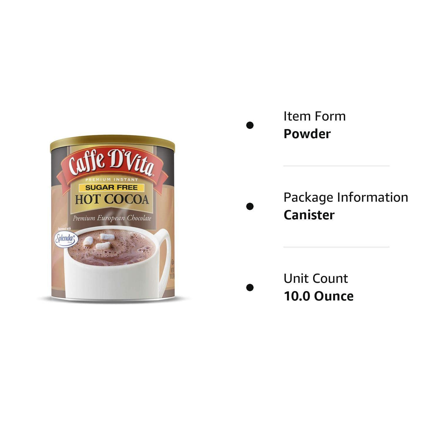 Our sugar free Hot Cocoa is sweetened with Splenda – same great taste with fewer calories. Using only the finest European chocolate we have created a premium Hot Cocoa that is RICH in flavor. Soothing and creamy, Hot Cocoa is always great on a cold and wintry day, but is enjoyable anytime, all year-round, day or night. No trans Fat, No hydrogenated oils, zero cholesterol, and gluten free.