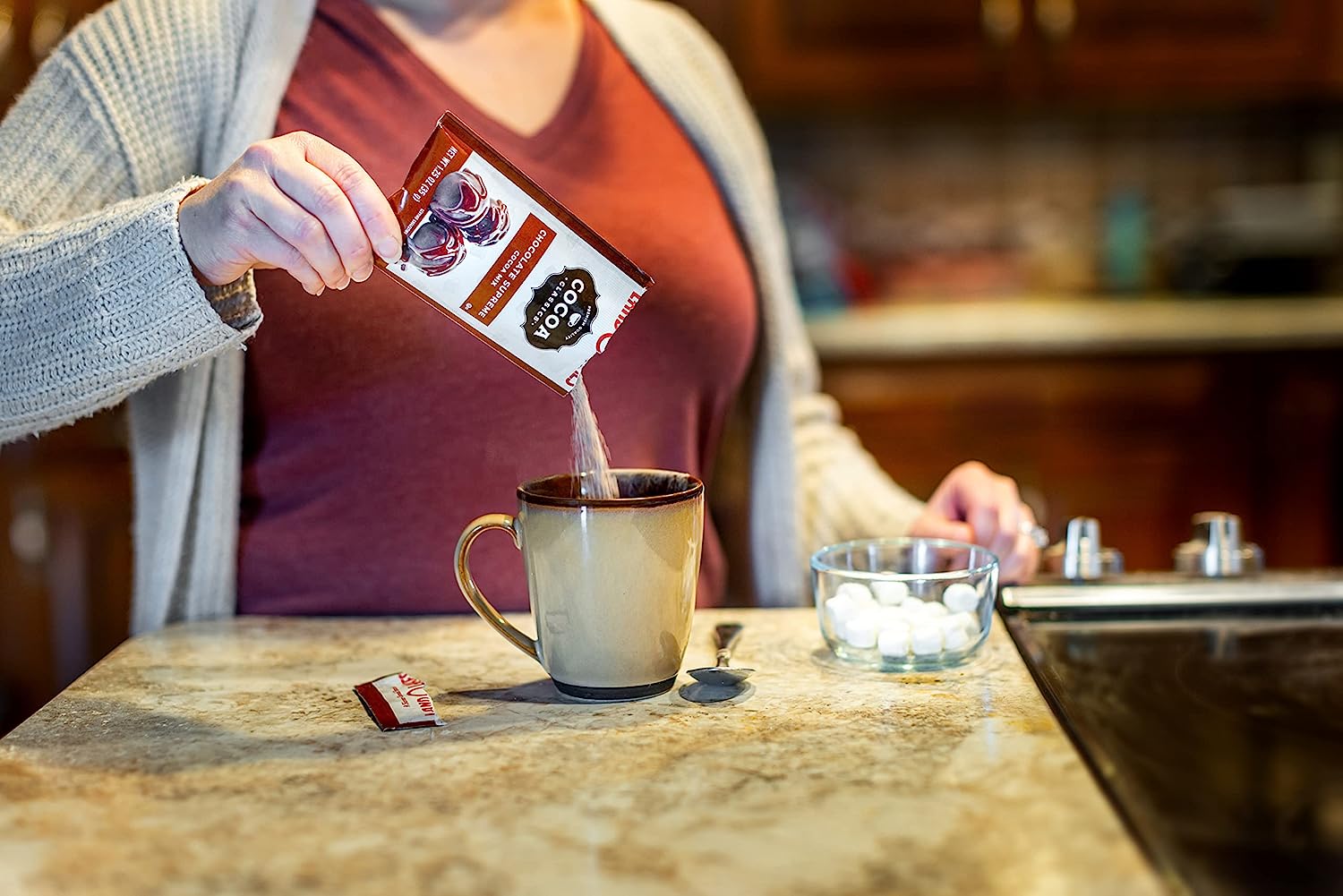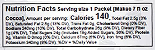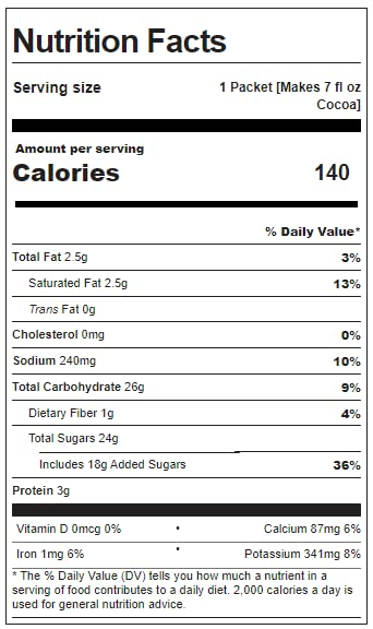 Perfect for those cold days, relaxing, or giving as a gift! Just add hot water to create rich, creamy, velvety hot cocoa Contains 9 Chocolate Supreme Hot Cocoa Mix Pouches Contains 8 French Vanilla and Chocolate Hot Cocoa Mix Pouches Contains 9 Salted Caramel and Chocolate Hot Cocoa Mix Pouches Contains 8 Mint and Chocolate Hot Cocoa Mix Pouches