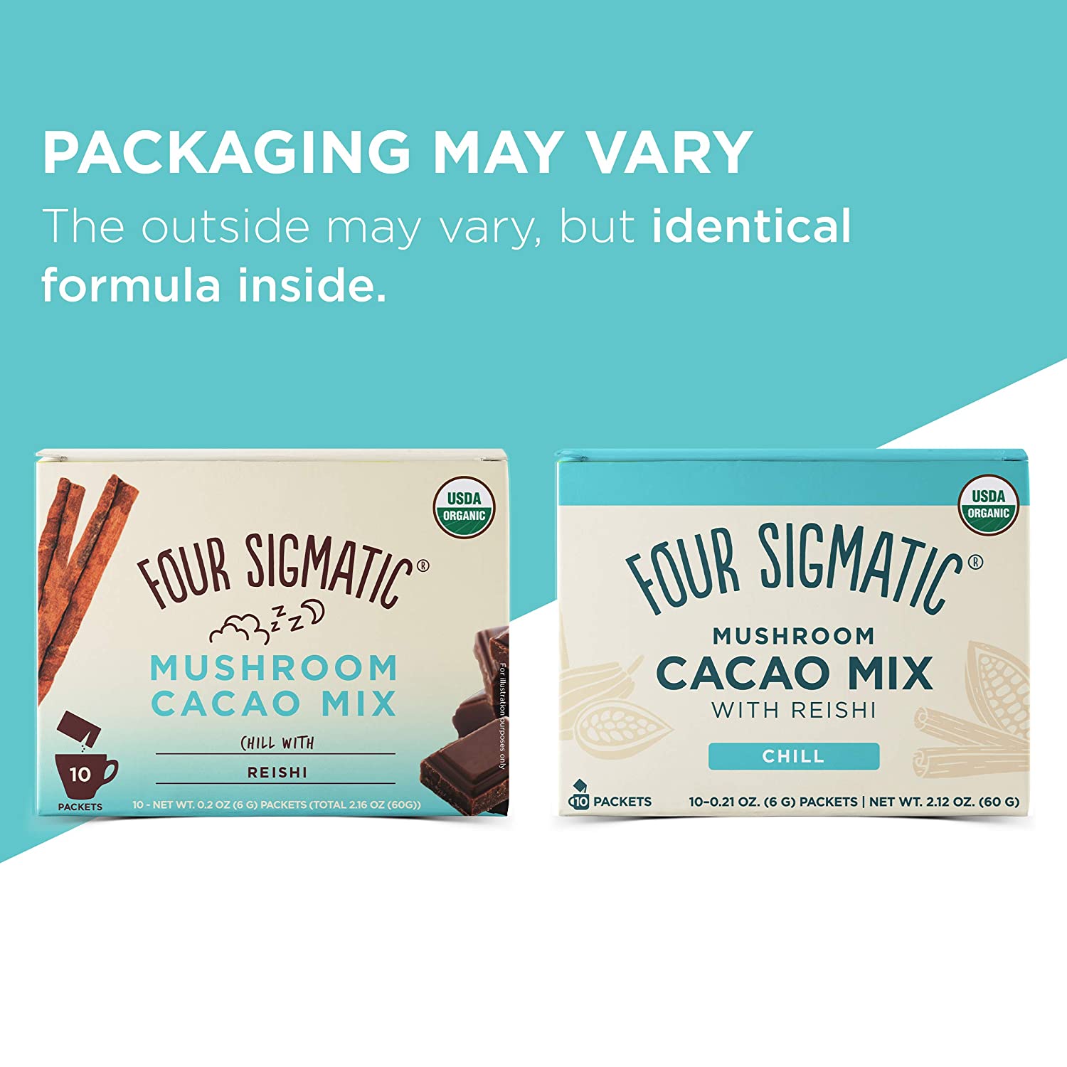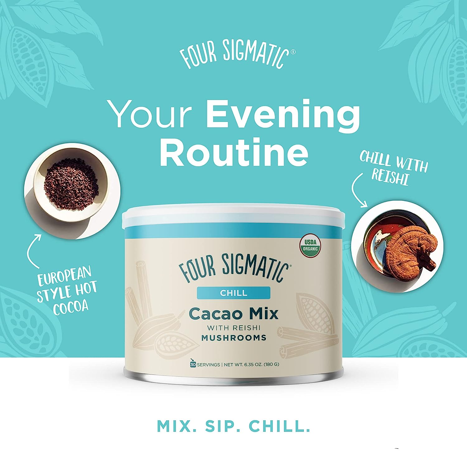 Mushroom Hot Cacao Mix by Four Sigmatic | Organic Reishi Mushroom Cacao Powder | Supports Stress & Sleep | Calm & Relax | Organic Cacao, Reishi, Cinnamon & Cardamom | Vegan & Gluten-Free | 10 Count