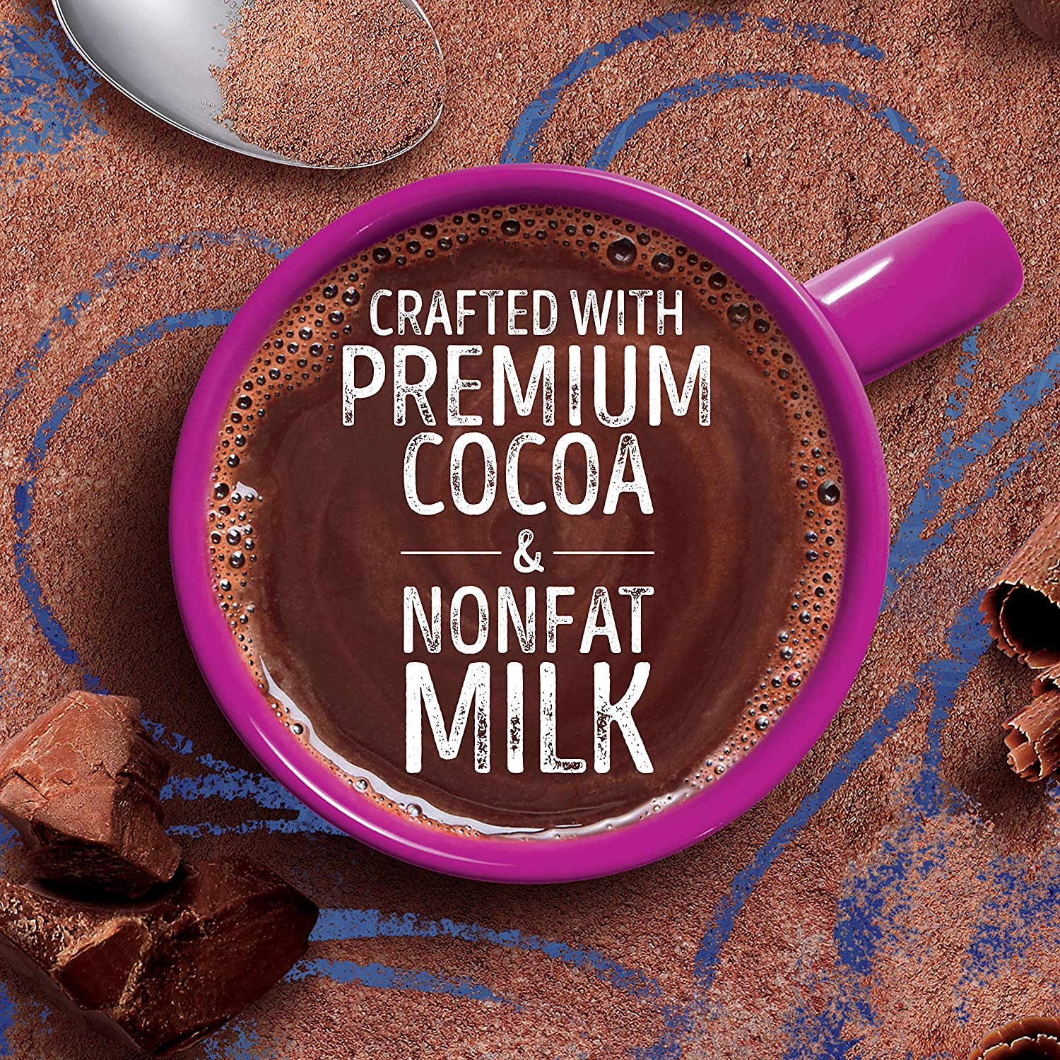 Embrace every sip of Swiss Miss Indulgent Collection Rich Chocolate Flavor Hot Cocoa. Crafted with premium cocoa and real nonfat milk, every mug of our Indulgent Collection gives you a moment to relax. With no artificial sweeteners, preservatives, flavors, or colors, this rich and decadent chocolate-flavored drink will warm and delight with every mug. Seize the moment you've been craving--you've got everything you need in the palms of your hands. Each 1.33 oz packet of Swiss Miss Indulgent Collection Rich Chocolate Flavor Hot Cocoa Mix contains 160 calories, 25 grams of total sugars, 1.5 grams of saturated fat, and is 99.9% caffeine free. This pack contains 12 boxes. For more than 50 years, Swiss Miss has been creating its signature blends in a real dairy in Menomonie, Wisconsin. Packaged here in the USA starting with farm-fresh milk, every cup of Swiss Miss has real, wholesome taste in every sip
