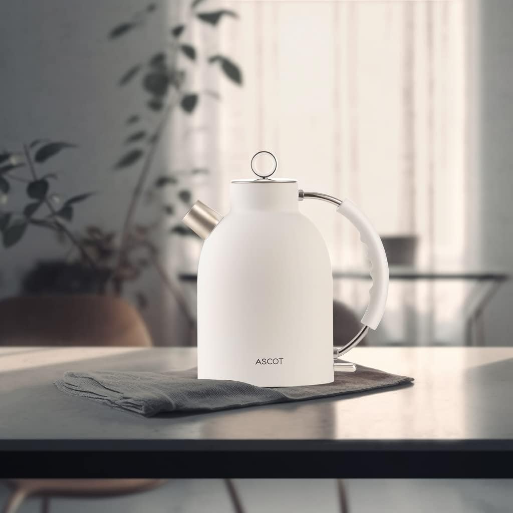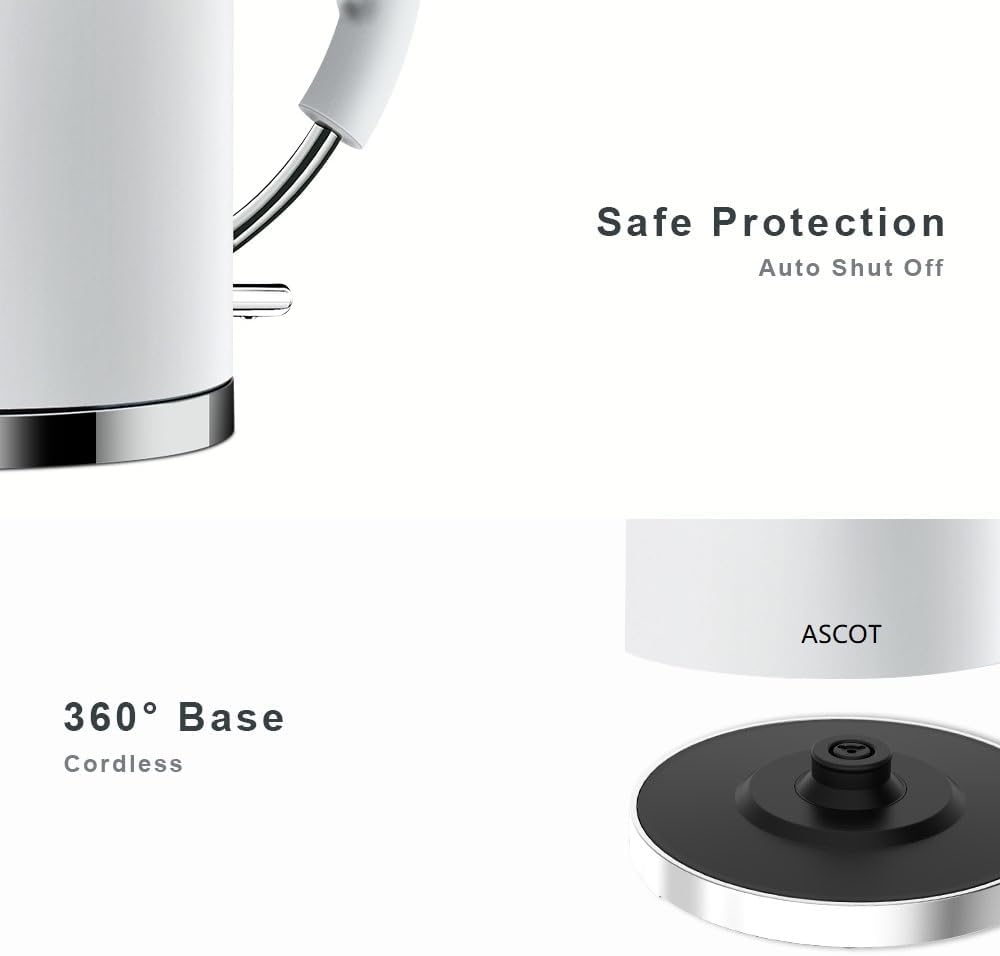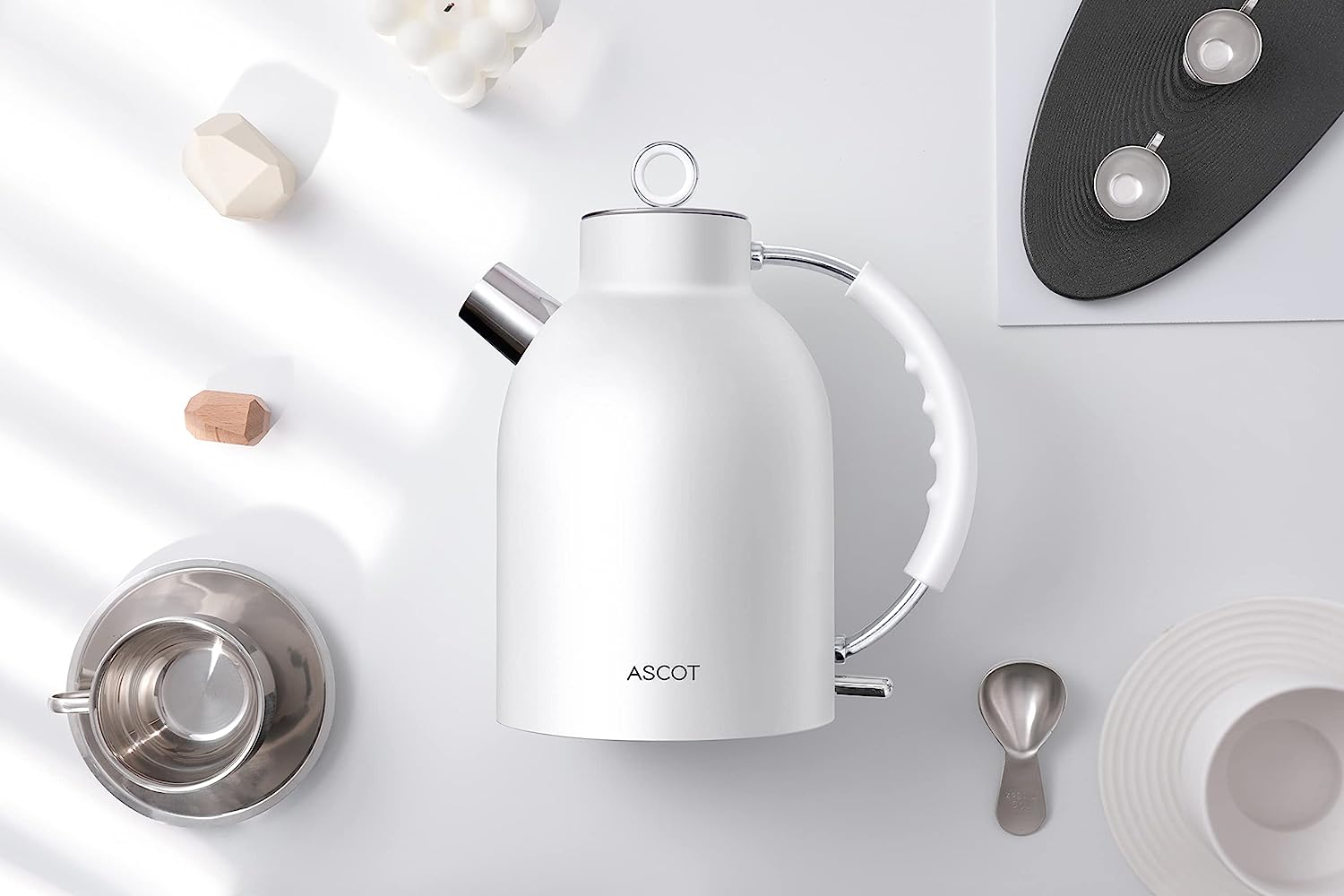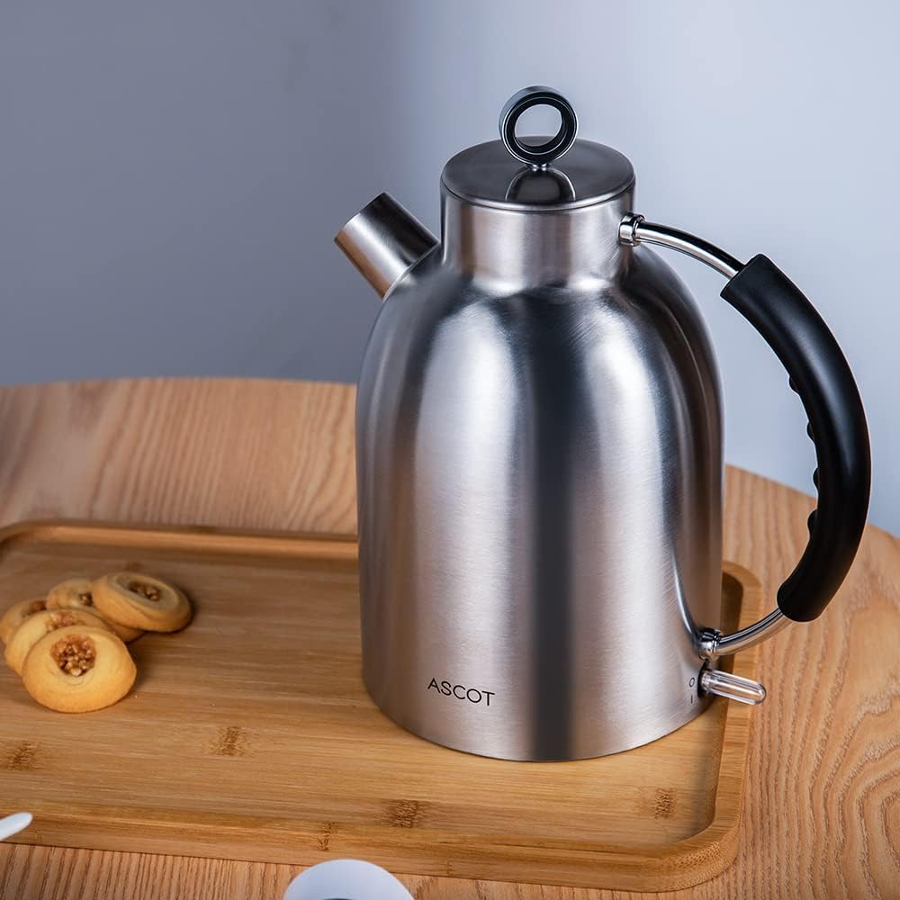 • STYLISH & PRACTICAL DESIGN - ASCOT stainless steel electric kettle with unique design and beautiful appearance. Anti-scald handle, round spout, separate lid, and spout filter are handmade by experienced craftsmen under strict quality standards.