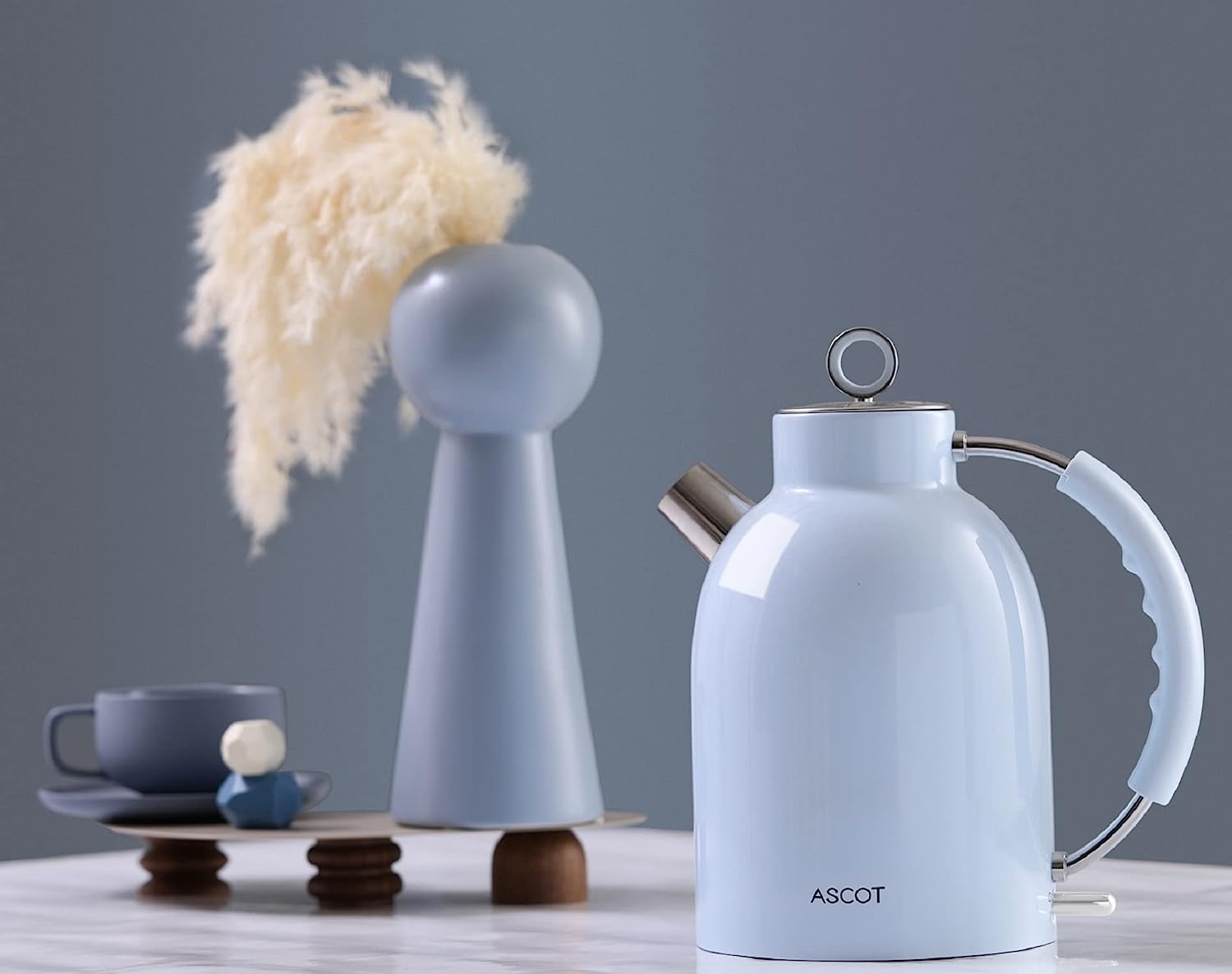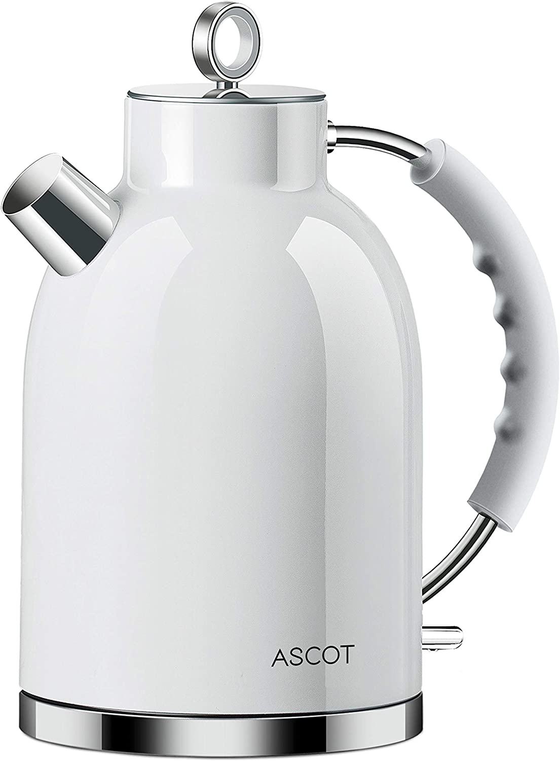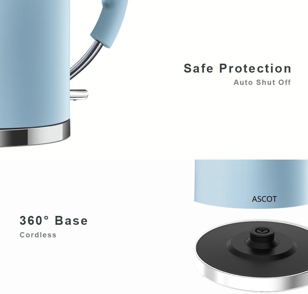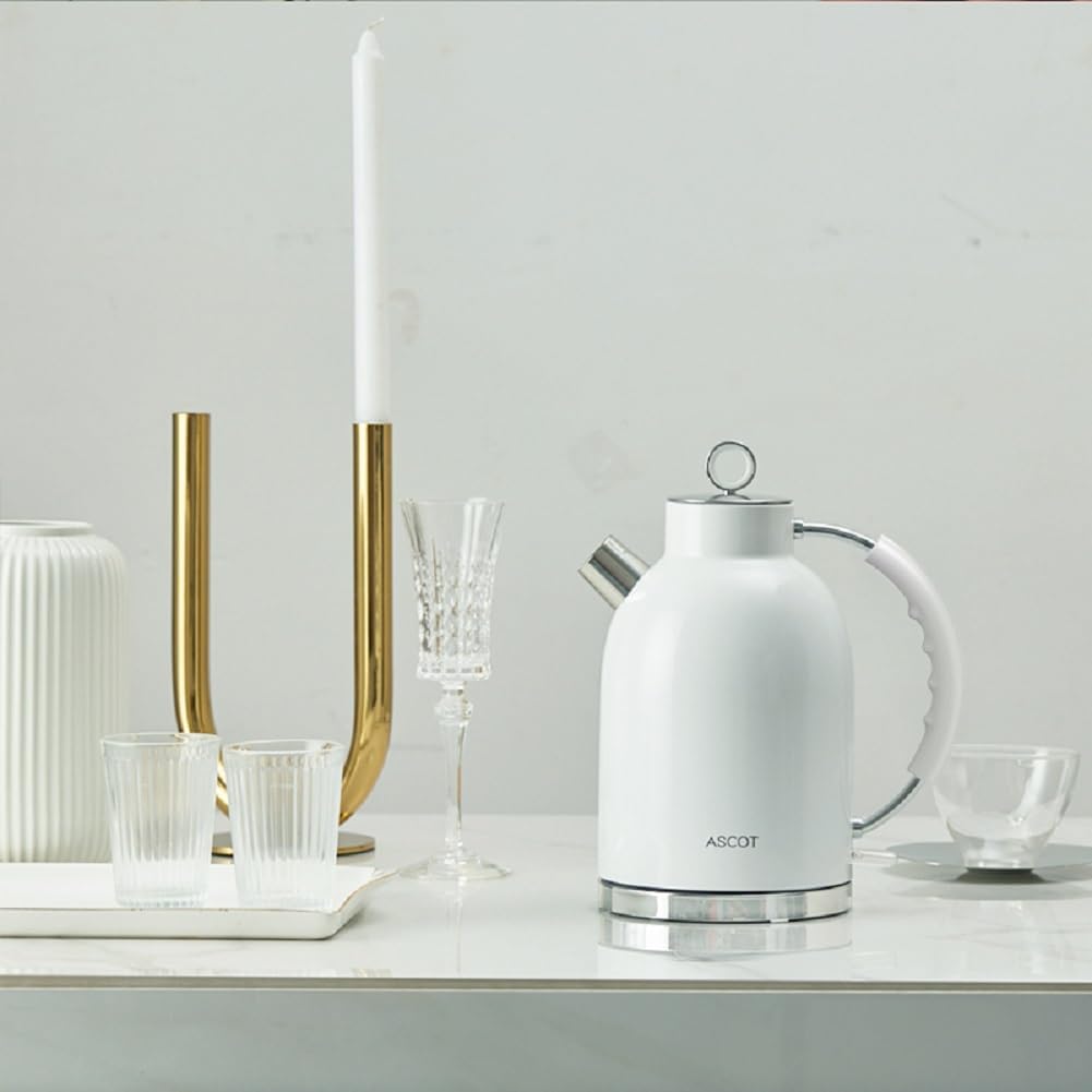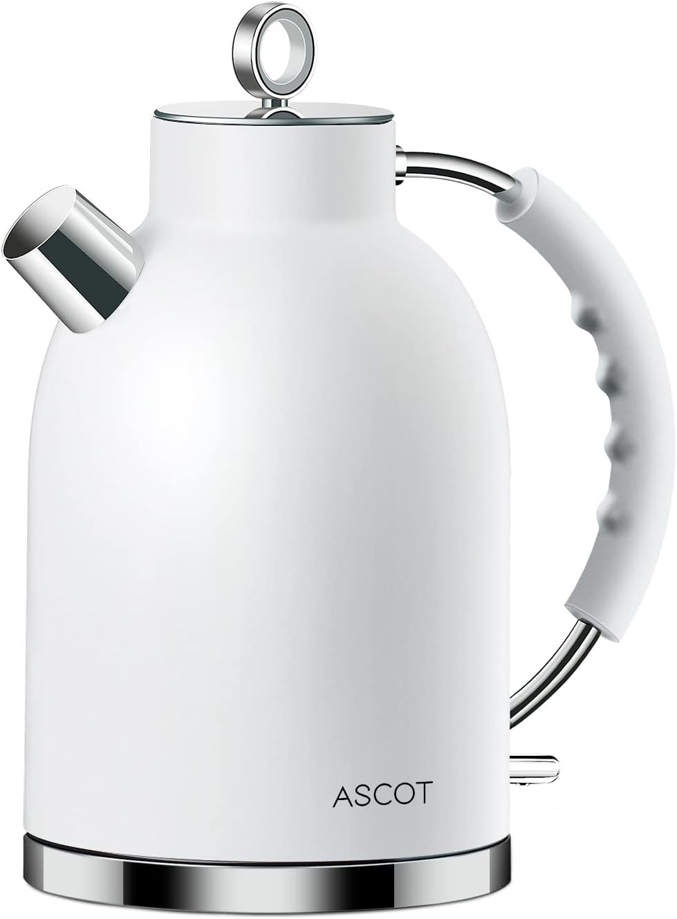 • STYLISH & PRACTICAL DESIGN - ASCOT stainless steel electric kettle with unique design and beautiful appearance. Anti-scald handle, round spout, separate lid, and spout filter are handmade by experienced craftsmen under strict quality standards.