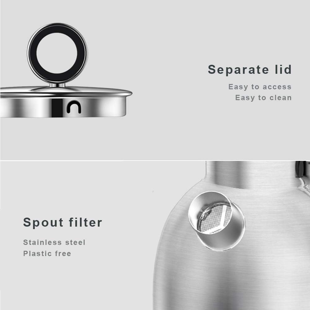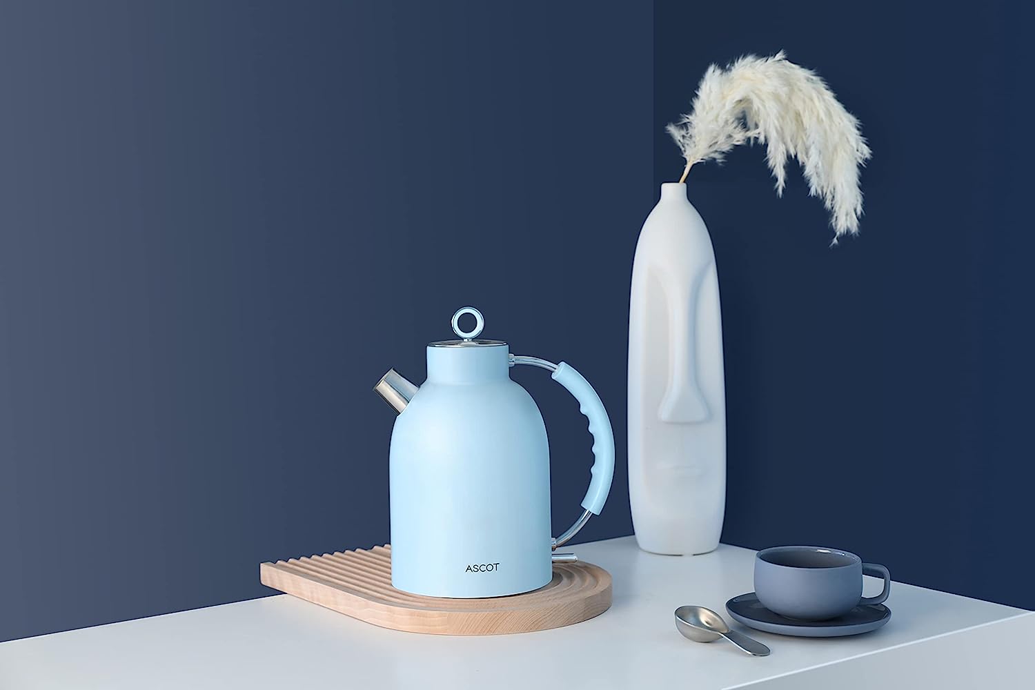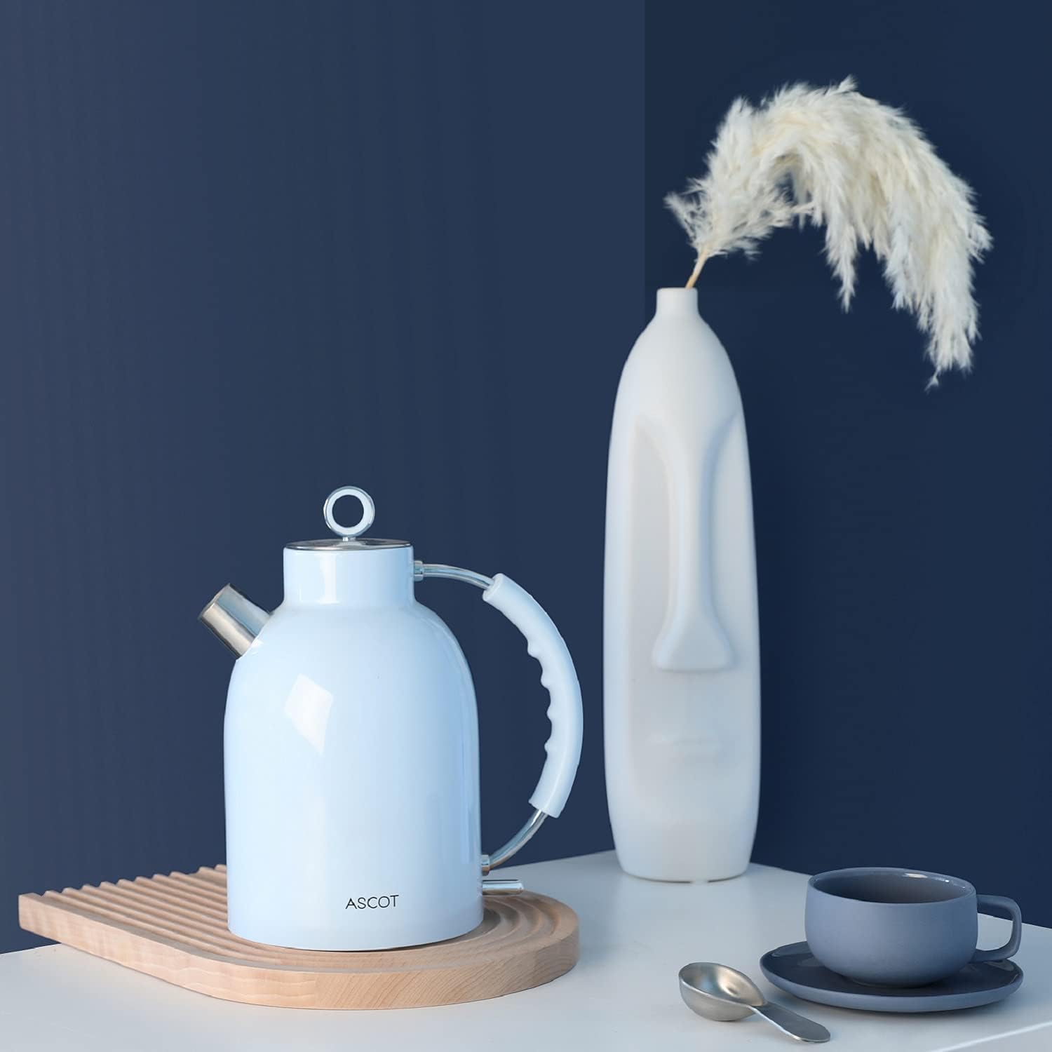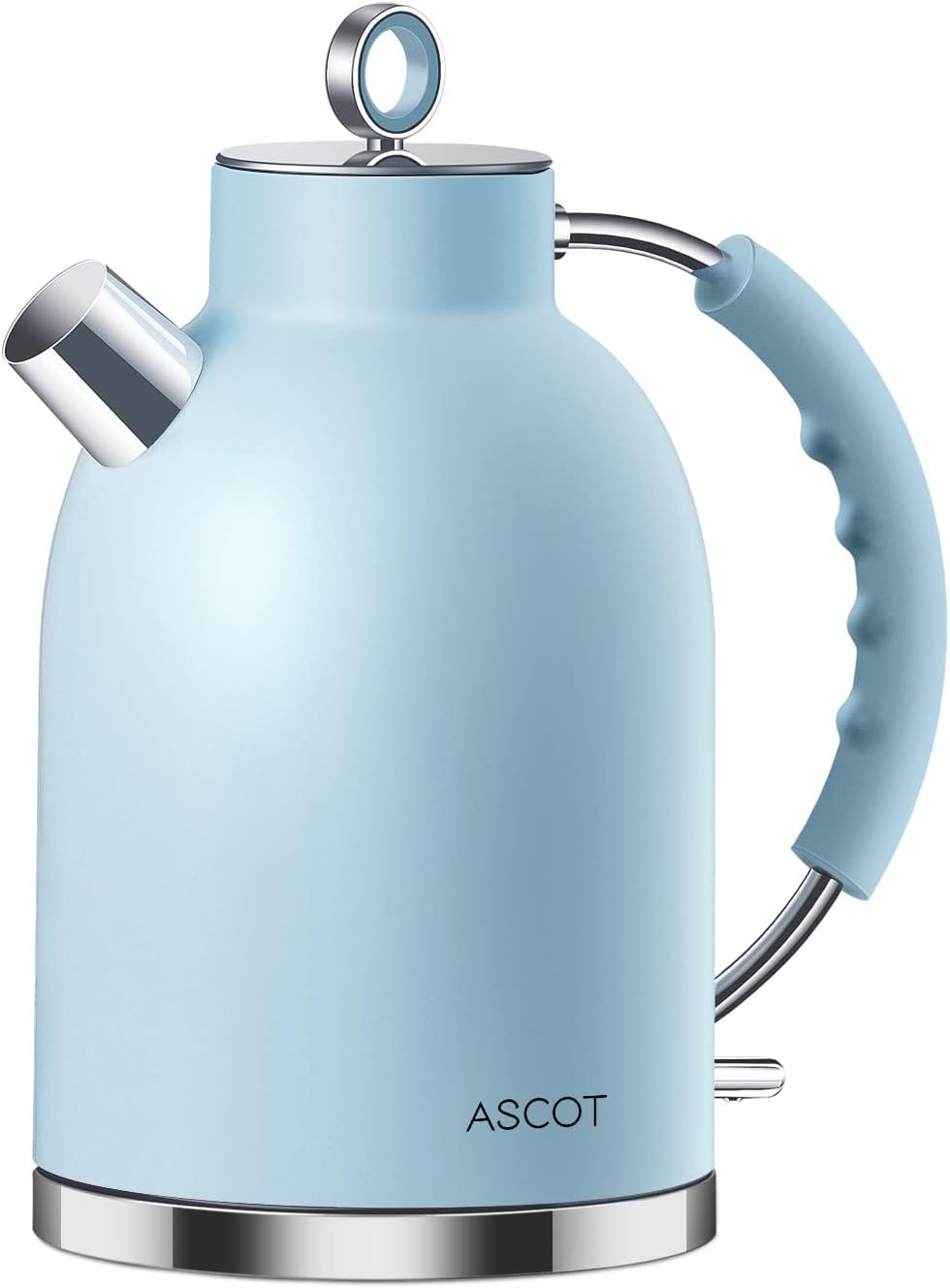 • STYLISH & PRACTICAL DESIGN - ASCOT stainless steel electric kettle with unique design and beautiful appearance. Anti-scald handle, round spout, separate lid, and spout filter are handmade by experienced craftsmen under strict quality standards.