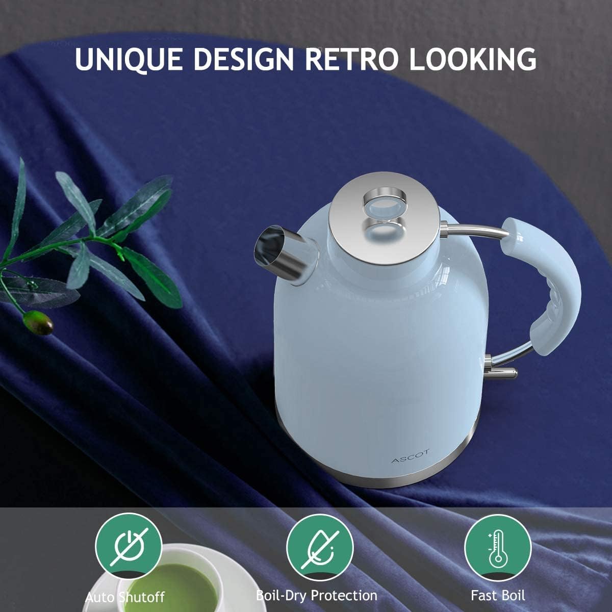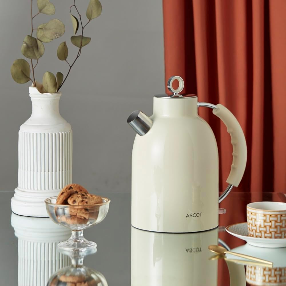 ASCOT Electric Kettle, Stainless Steel Electric Tea Kettle Gifts for Men/Women/Family 1.6L 1500W Retro Tea Heater & Hot Water Boiler, Auto Shut-Off and Boil-Dry Protection (Cream)