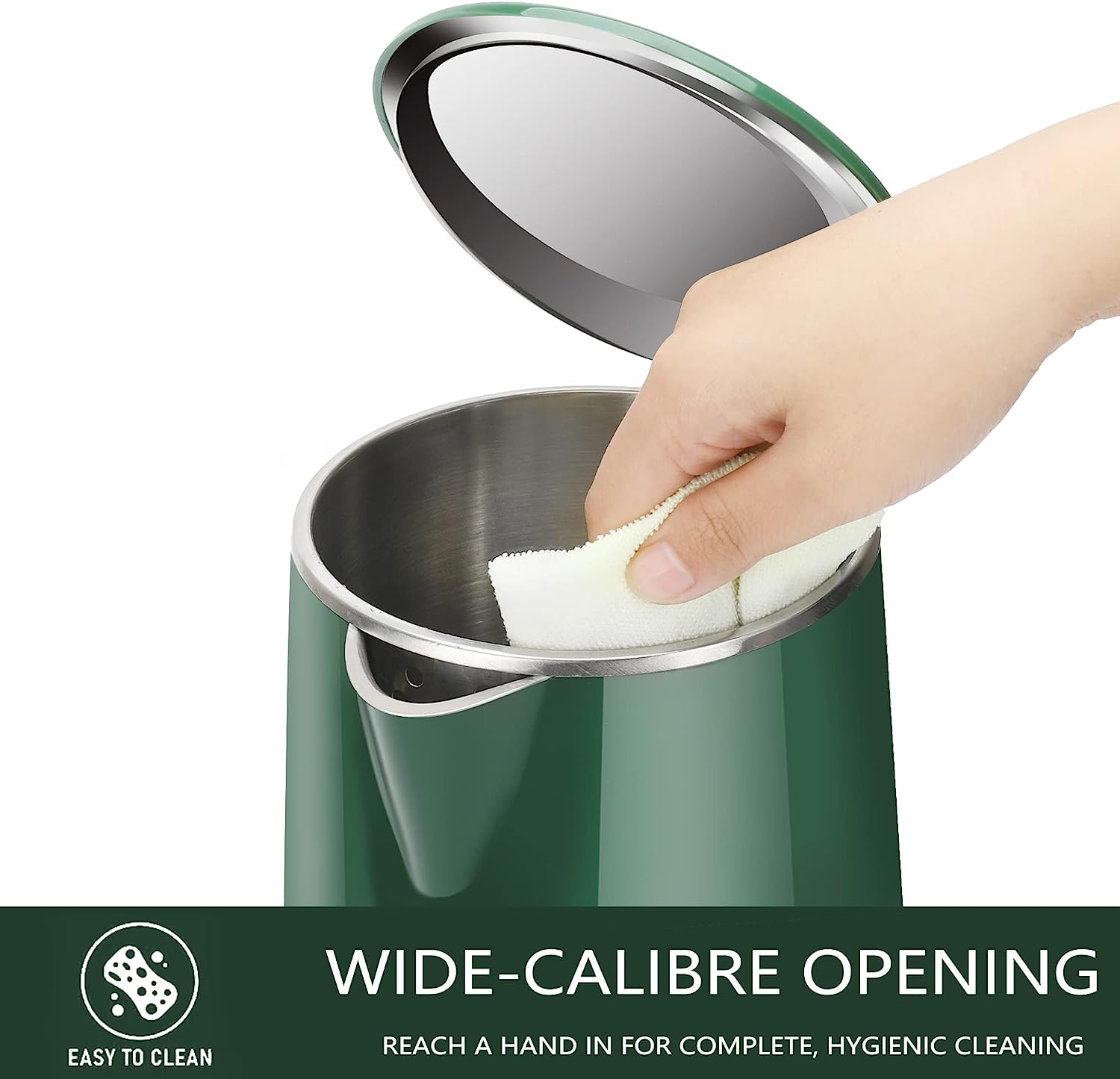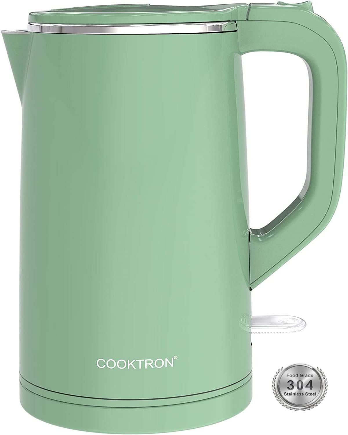 COOKTRON 1.7L Electric Kettle Quiet Water Heater Kettle Double Wall Electric Kettles for Boiling Water Stainless Steel BPA-Free Hot Water Boiler Cool Touch Tea Pot, 1500w Fast Boiling, Green