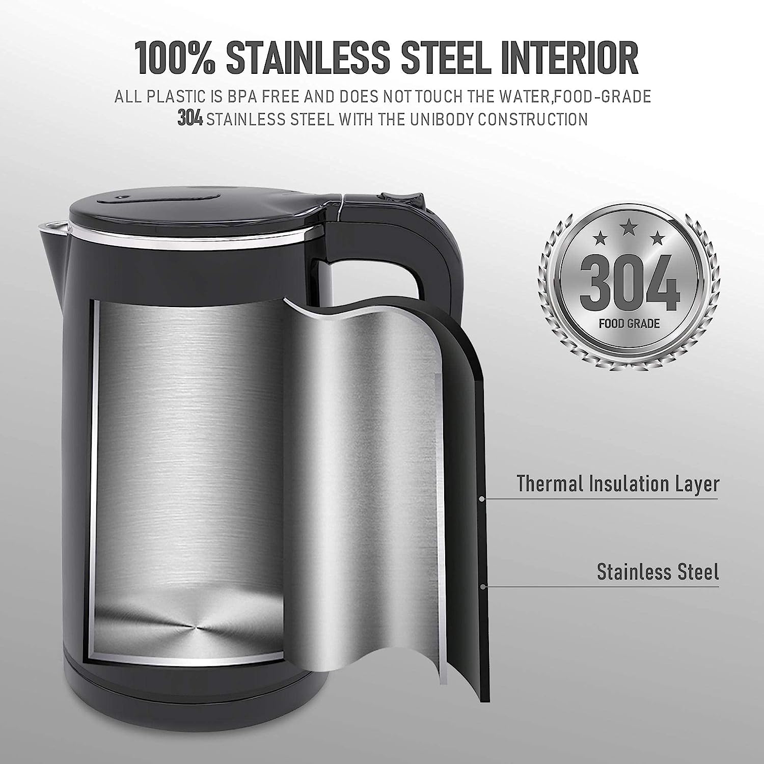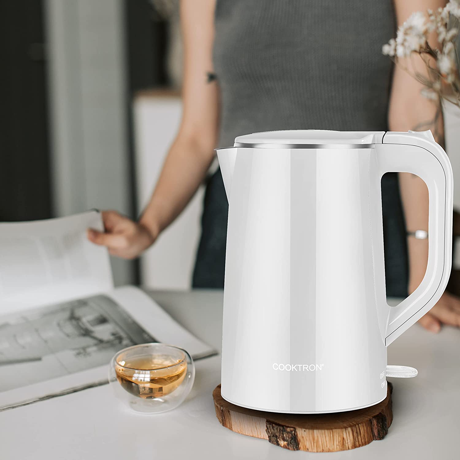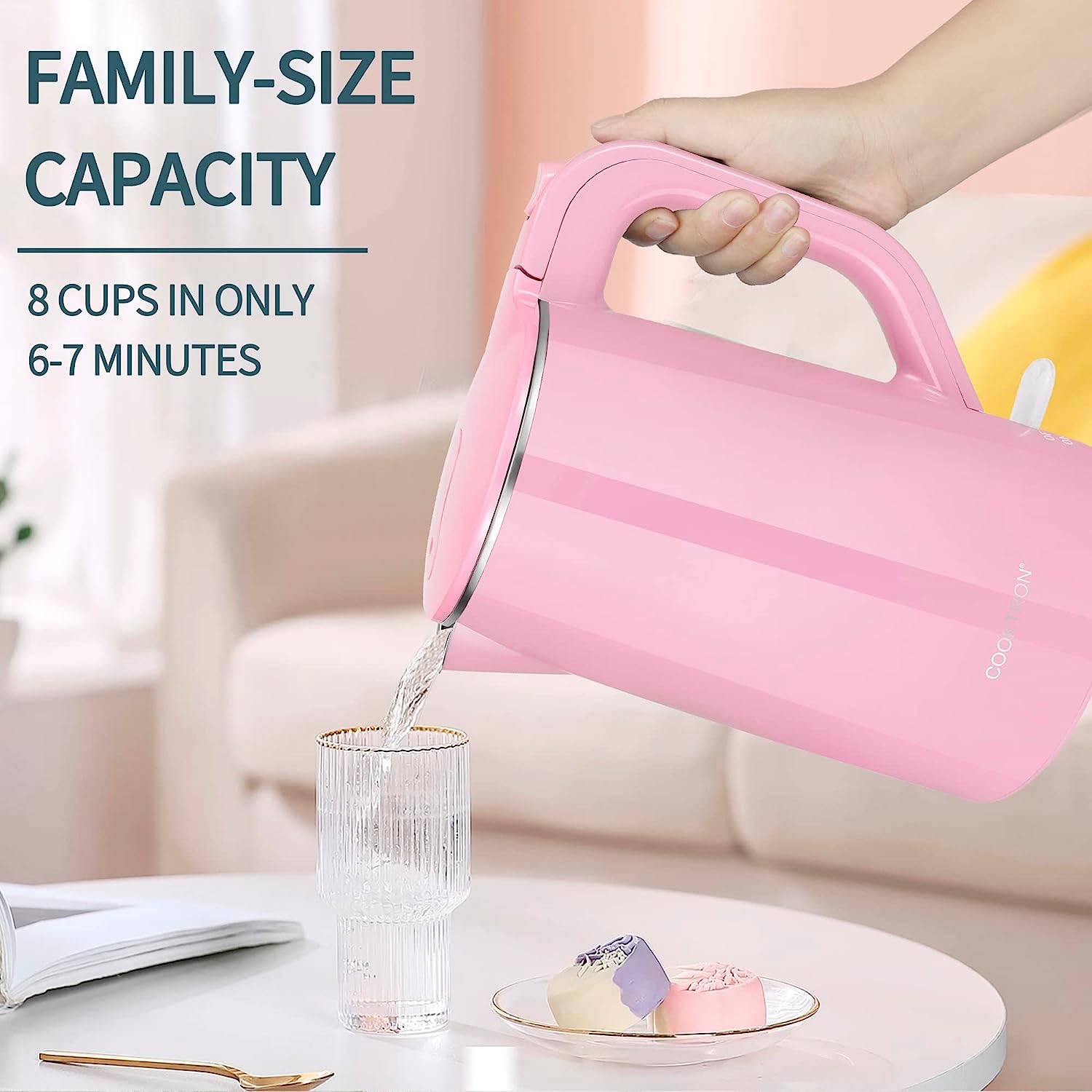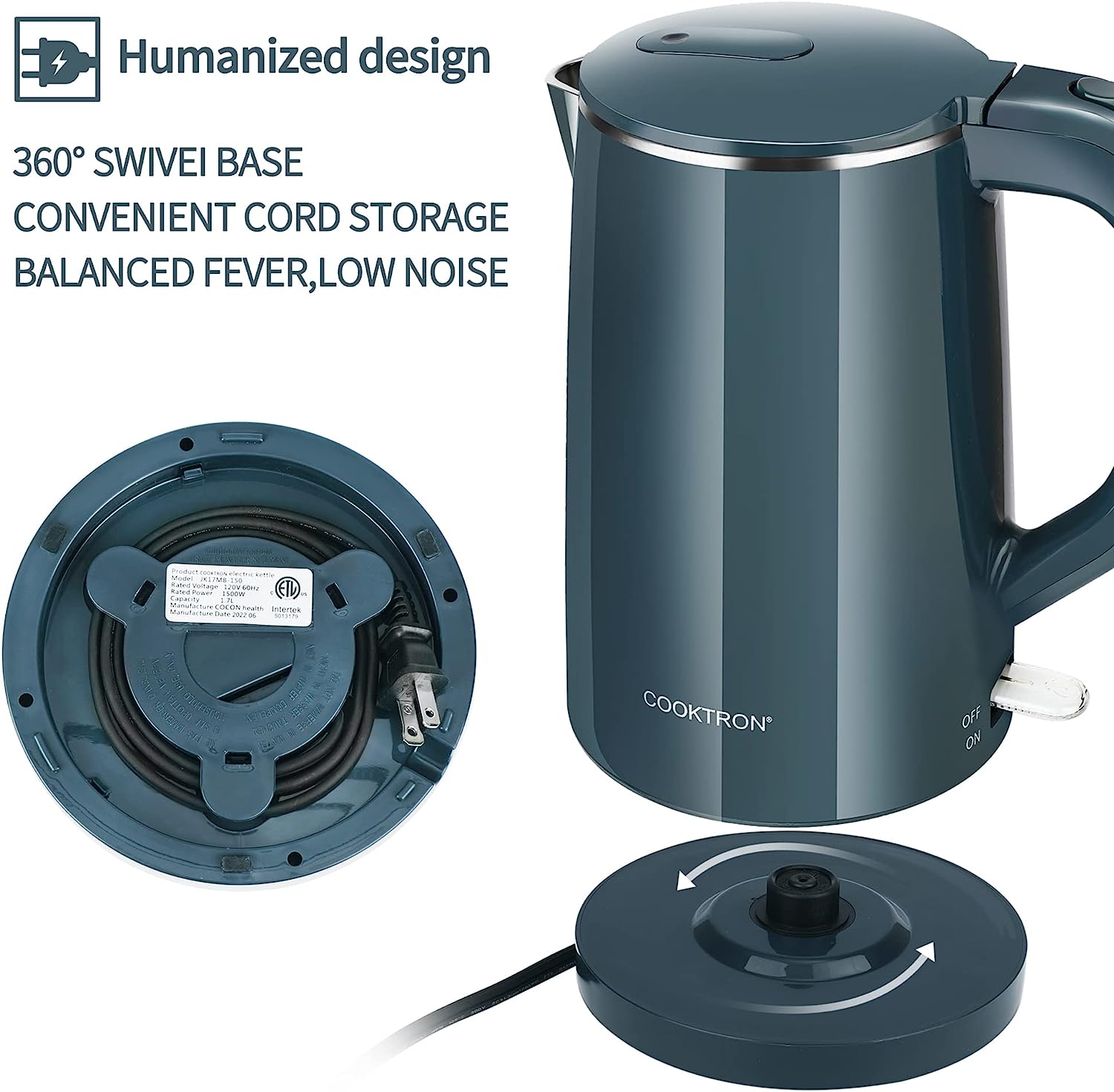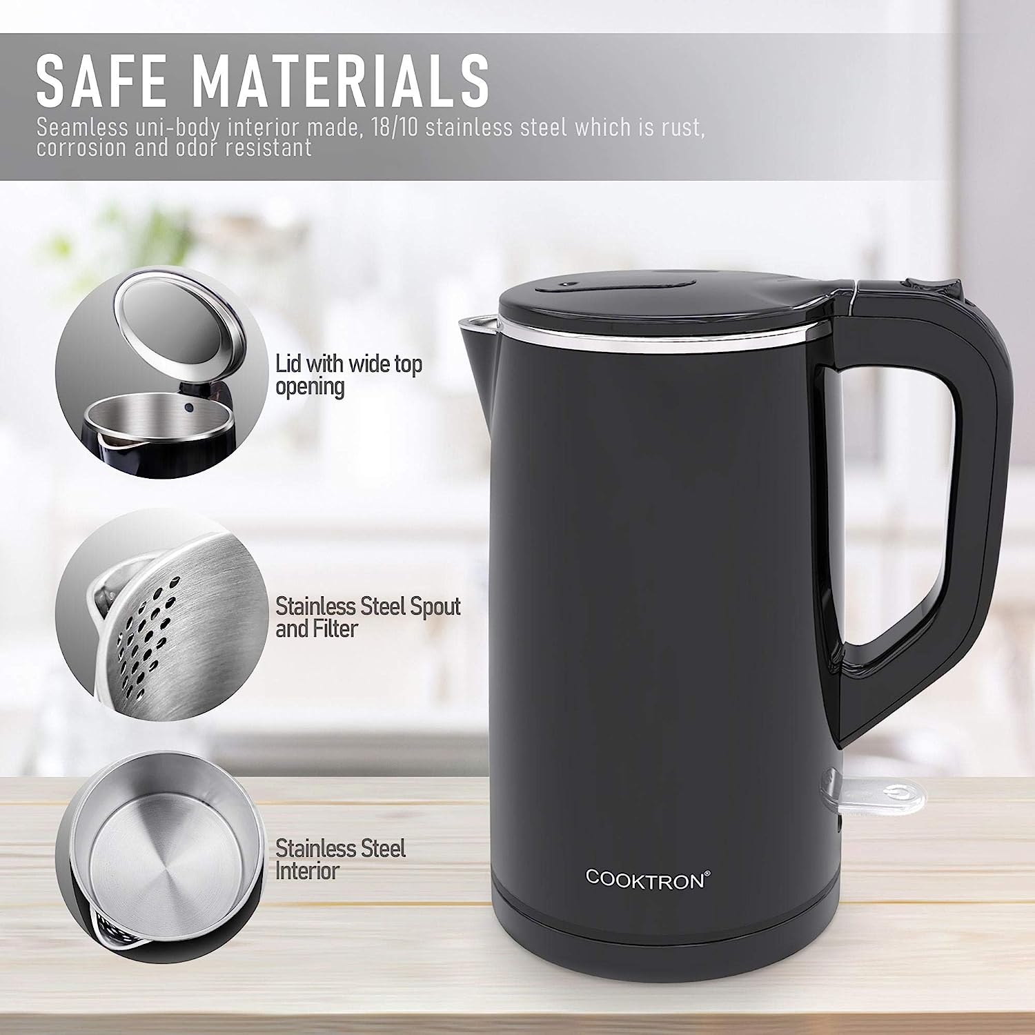 • ????-???????? ??????: 100% stainless steel interior, SUPER QUIET OPERATION, BPA-free, 360° rotatable power base design, smudge and fingerprint resistant cool-touch exterior, all these features make COOKTRON hot water kettle a wonderful choice for your home.