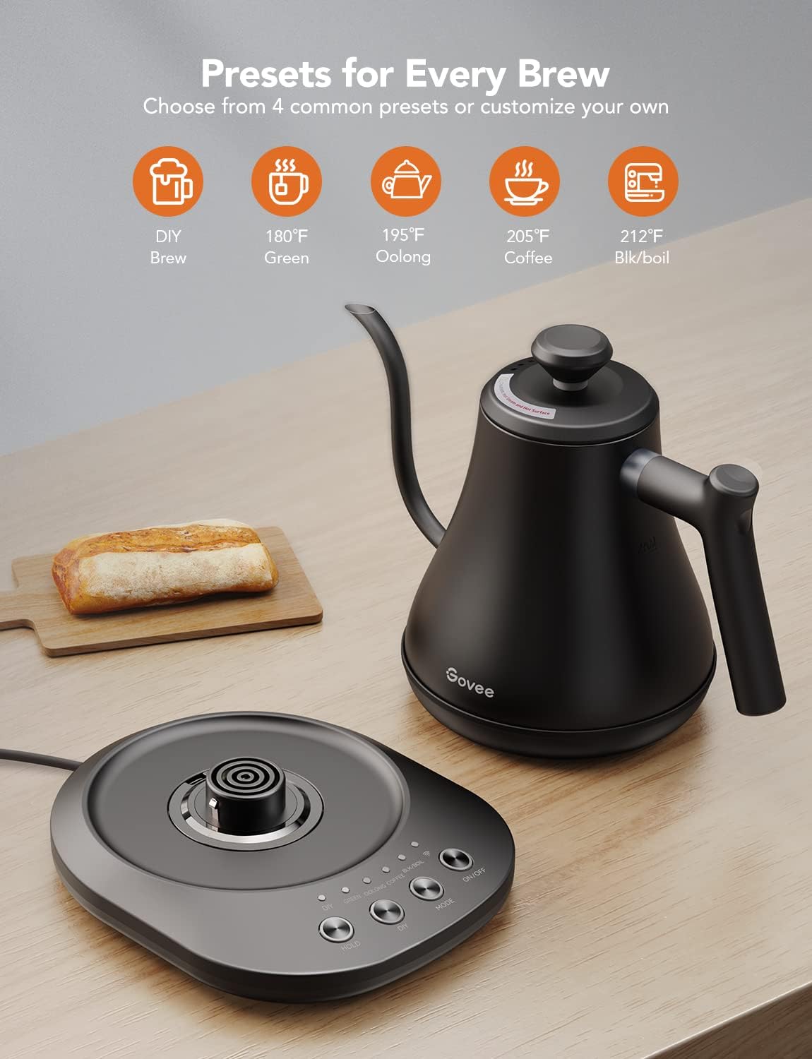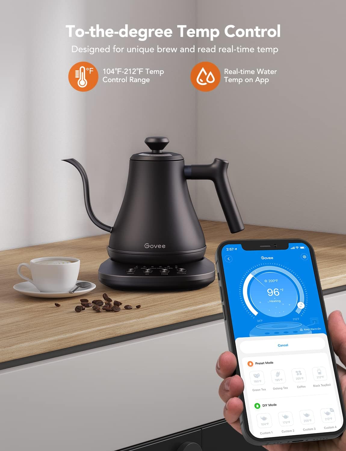 Govee Smart Electric Kettle, WiFi Variable Temperature Control Gooseneck Kettle, Pour Over Kettle and Tea Kettle, Alexa Control, 1200W Quick Heating, 100% Stainless Steel, 0.8L, Matte Black