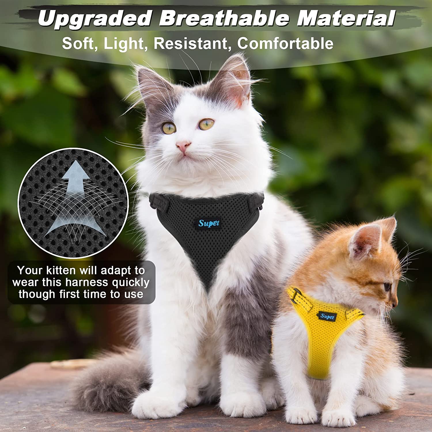 Supet Cat Harness and Leash Set for Small to Large Cats, Adjustable Cat Leash and Harness Set Escape Proof with Reflective Trim Universal Kitten Harness for Cats Puppies Outdoor Walking
