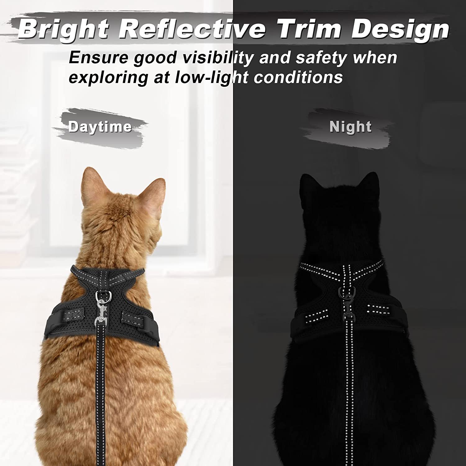 • 【Easy Control Cat Safety Harness】Unlike other product, our harness and leash both have reflective stripe which can reflect ambient light in low-light conditions, ensuring maximum visibility when night exercise; This cat escape proof harness features a sturdy D-ring on the back to attach to the cat leash. The vest-style design can distribute leash pressure across the chest and shoulders to prevent choking or neck strain, which offers much more comfort and security than other style harness.