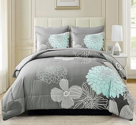 Yiran 7 Pieces Bed in a Bag Floral Comforter Set Queen Flowers Bedding Set Soft Microfiber Comforter Sets with 1 Comforter 1 Flat Sheet 1 Fitted Sheet 2 Pillowshams and 2 Pillowcases