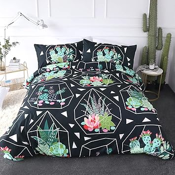 Cactus Duvet Cover Set Queen Size Geometric Succulents Pattern Pattern Luxury Bedding Set Comforter Cover 1 Duvet Cover and 2 Pillowcases