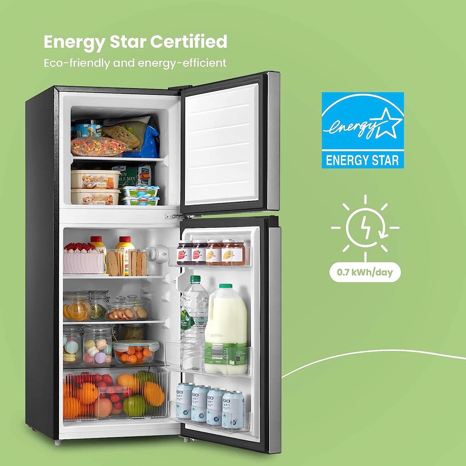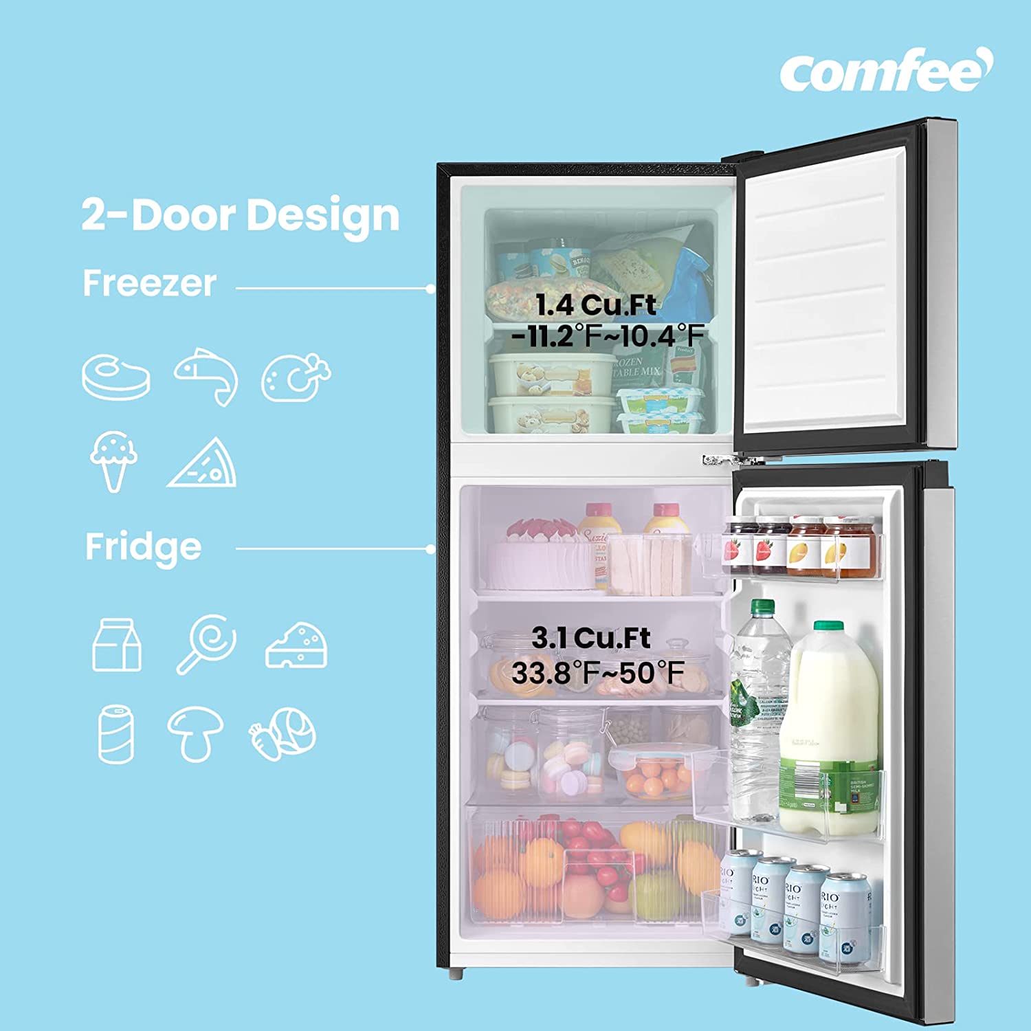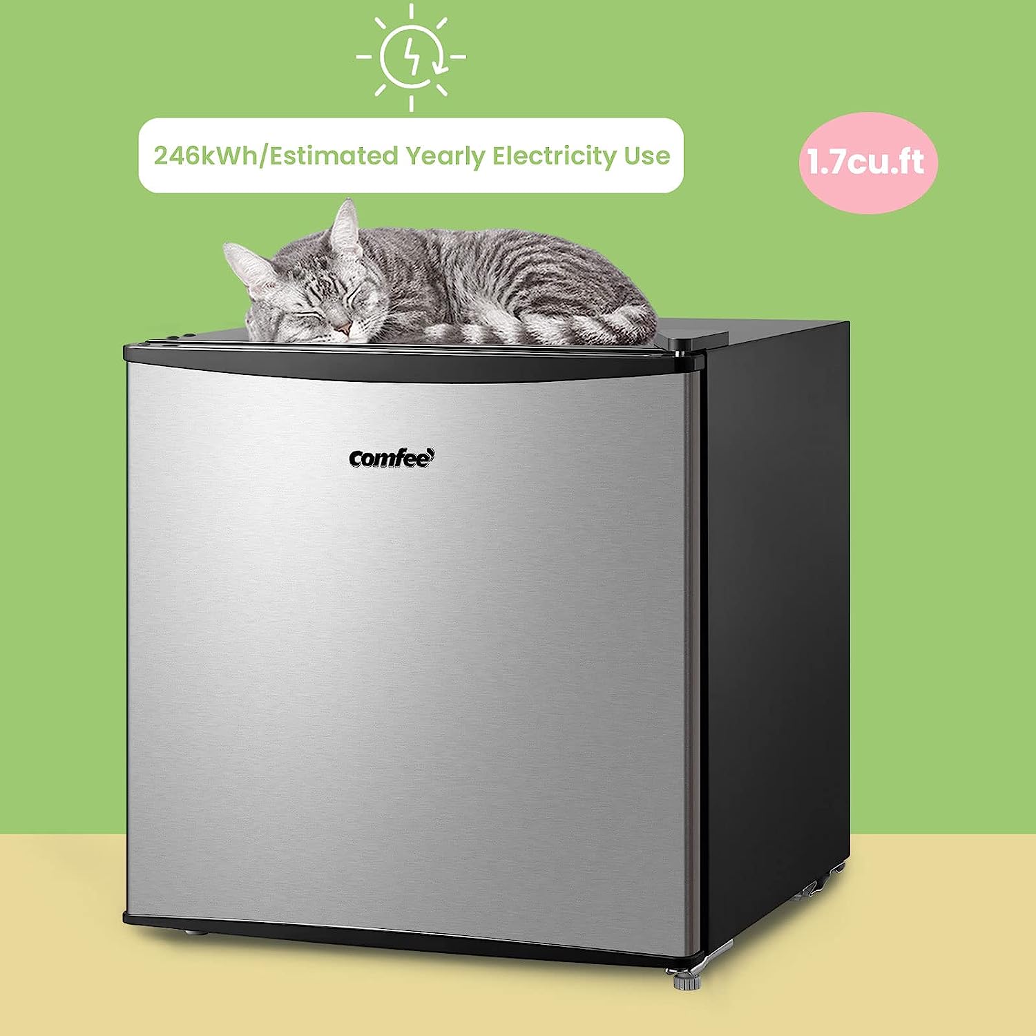 COMFEE' CRM17S3AST Mini Fridge,1.7 Cubic Feet Small Refrigerator for bedroom/dorm/office/Garage ,Dorm Refrigerator with Adjustable Theromatation,Silver
