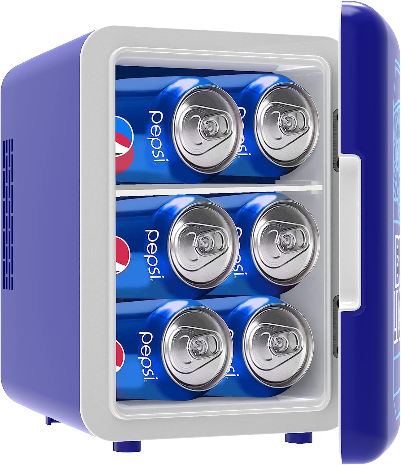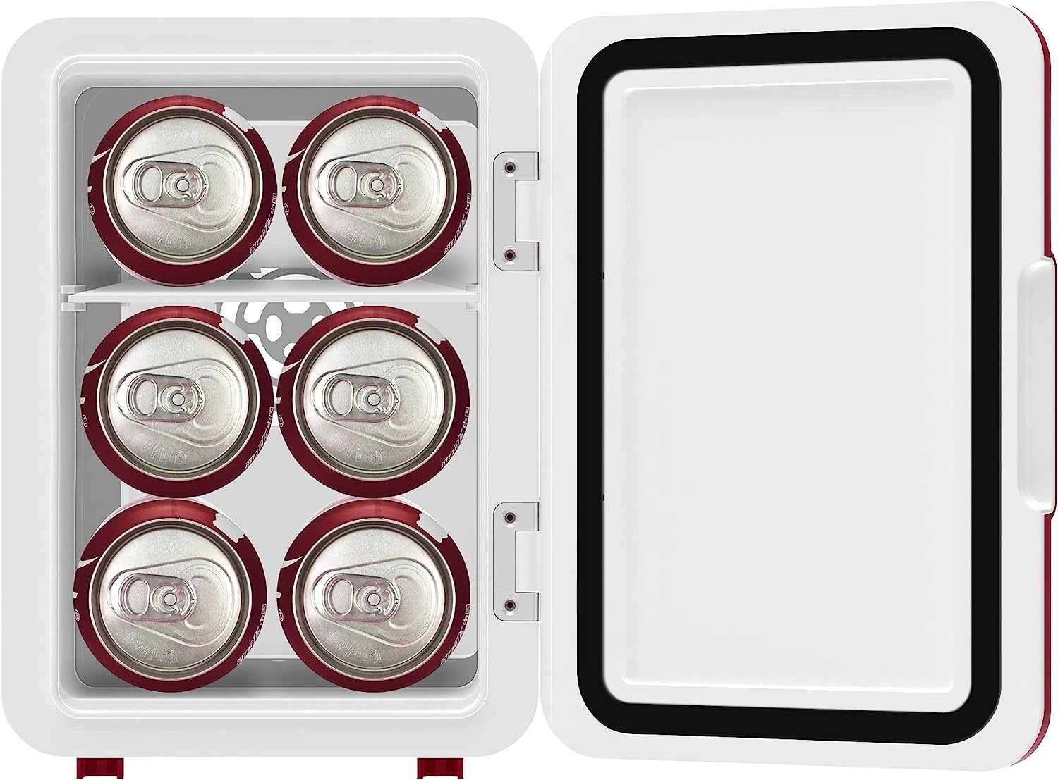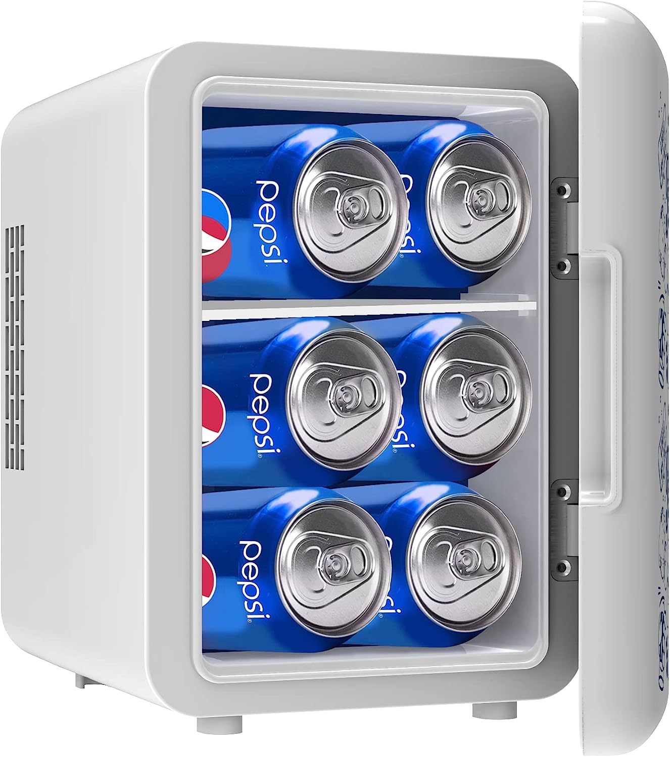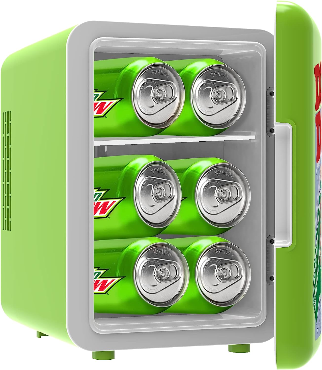 MINI FRIDGE, MAXIMUM CHILL. The Portable Personal Fridge keeps your food and drinks the perfect temperature while at home and on the go. The ultimate versatile cooler, this mini fridge, cools up to 32°F below ambient temperature. Compact space saving design and lightweight features make it easy to take with you anywhere, yet can still fit your needs; 4 Liter capacity chills six 12 oz. cans, while a removable shelf makes it easy to store milk, juice, yogurt, bottles, smoothies, cheese, fruit, coffee, soup, and many more home cooked meals or beverages. Perfect for personal spaces, bedrooms, offices, hotels, boats, carpools, soccer games, sporting events, backyard BBQ, pool parties and more Conveniently plugs into standard home outlets. 100% Freon-Free with advanced safety technology for long-lasting durability.