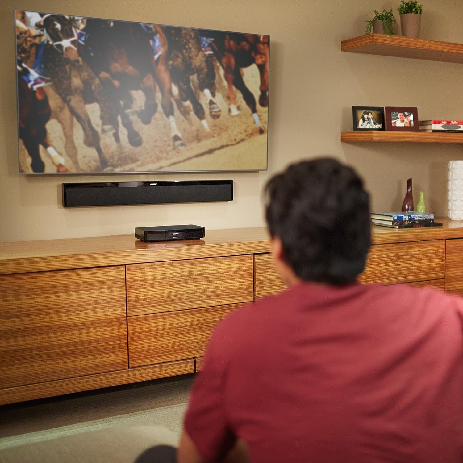 From unexpected plot twists to complex characters, there's a lot to love about TV shows and movies. Especially the sound. With the Bose Sound Touch 130 home theater system, the sound bar delivers clear, spacious sound all across your room, while the wireless Acoustic mass module provides impactful bass even if you hide it out of sight. It's also a powerful music system, letting you easily enjoy wireless music when connected to your existing home Wi-Fi network or Bluetooth devices. Stream music services like Spotify and Pandora, Internet radio stations or your own stored music library. A small control console with four HDMI inputs ensures you hear the movie or soundtrack the way it was meant to be. Conventional systems that connect only to your TV's audio output can't guarantee you're getting the best possible audio experience from your source devices. A universal remote is included as well to simplify your everyday experience. Included: Sound Touch 130 sound bar speaker; wireless Acoustic mass module; Sound Touch wireless adapter; control console; universal remote control; HDMI cable.