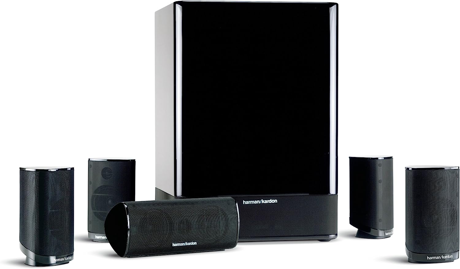 The Harman Kardon HKTS 15 is a beautiful black lacquer speaker system with a powerful 100 watt 10" subwoofer. It is a 5.1 speaker system which can be expanded to 7.1 with the optional HKS 6 Harman Kardon surroung speakers. The system uses a 3/4" tweeter for great high frequency performance. It is magnetically shielded so it can be put up next to your TV. It comes with all the speaker cables as well as brackets to either wall mount or shelf mount the satellite speakers. The subwoofer automaticaly senses when a signal is present and turns on at that time.