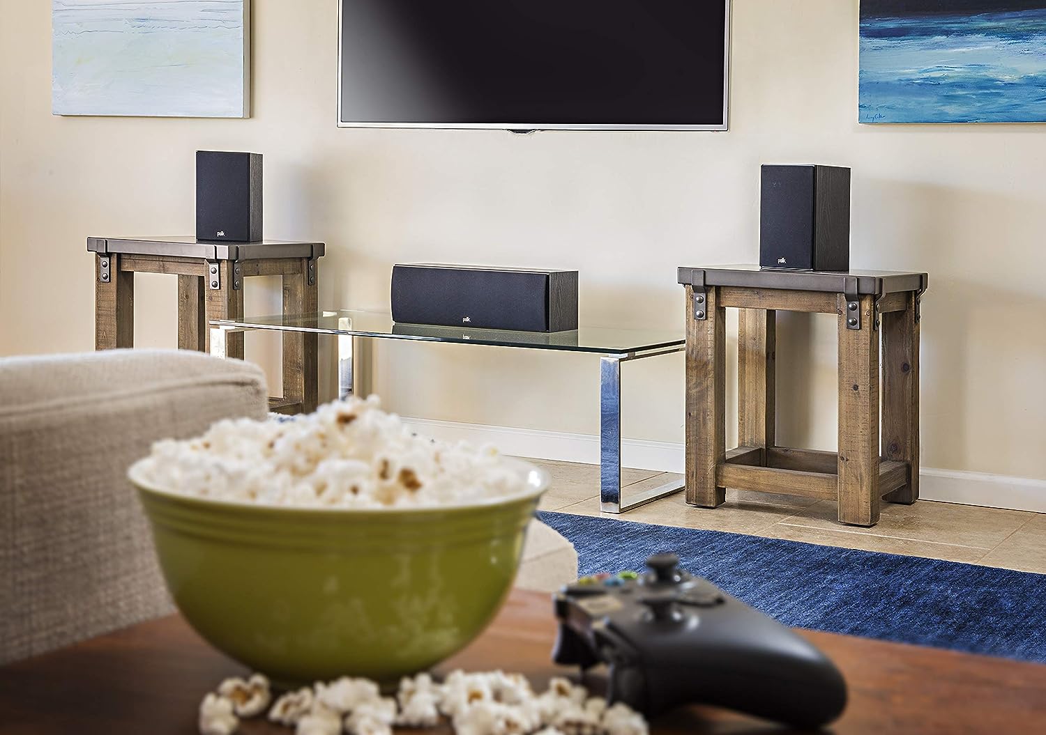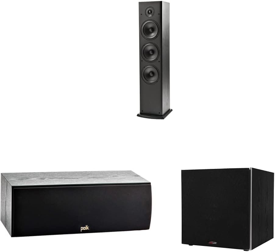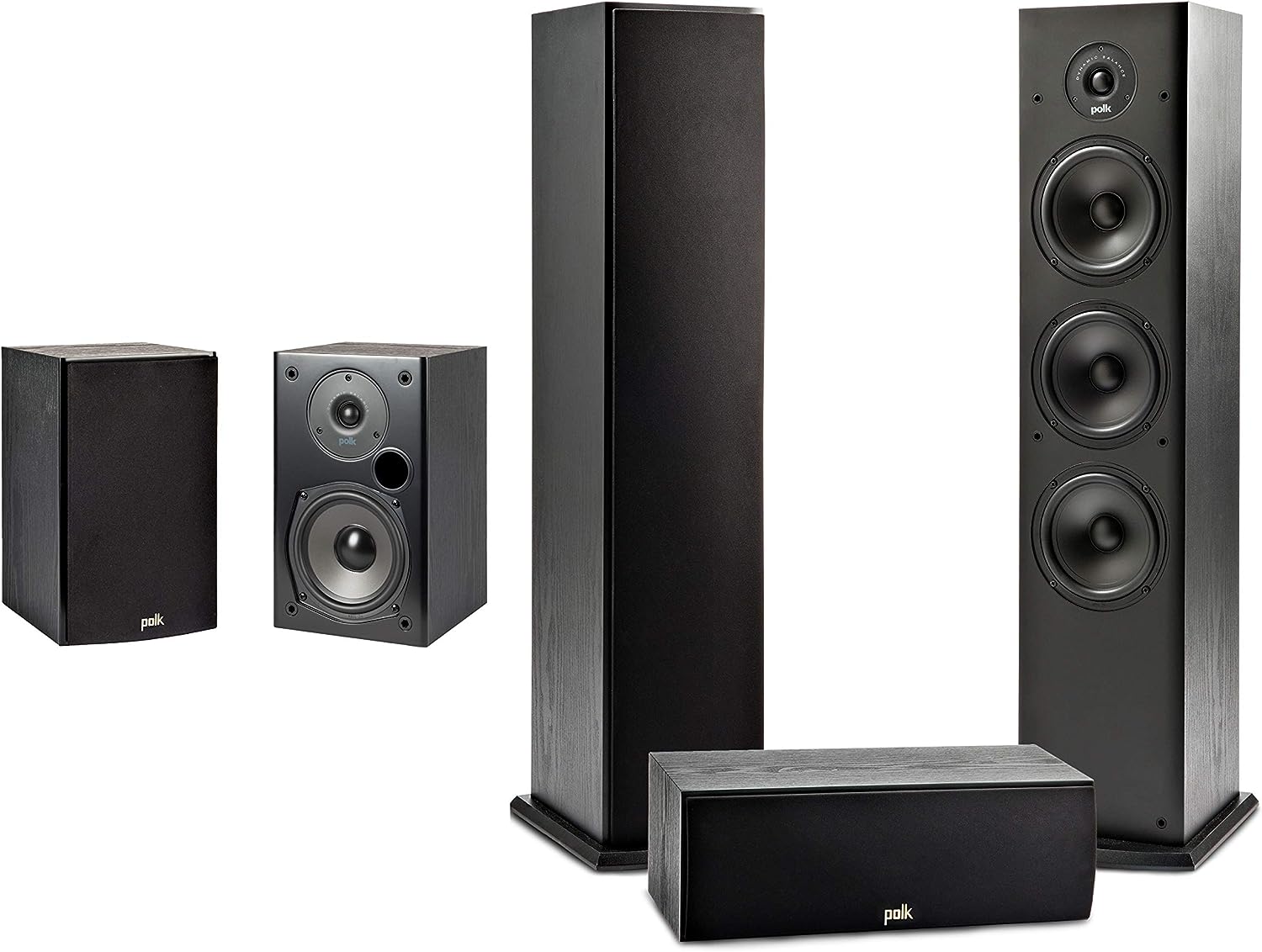 5.1 HOME THEATER SETUP with the complete range of T-series speakers from Polk with two T50 Tower Speakers, one T30 Center Channel, two T15 Bookshelf speakers and a subwoofer.With these value-priced speakers, you can now enjoy premium acoustics, high quality construction, easy setup and a spectacular theater experience right at home.