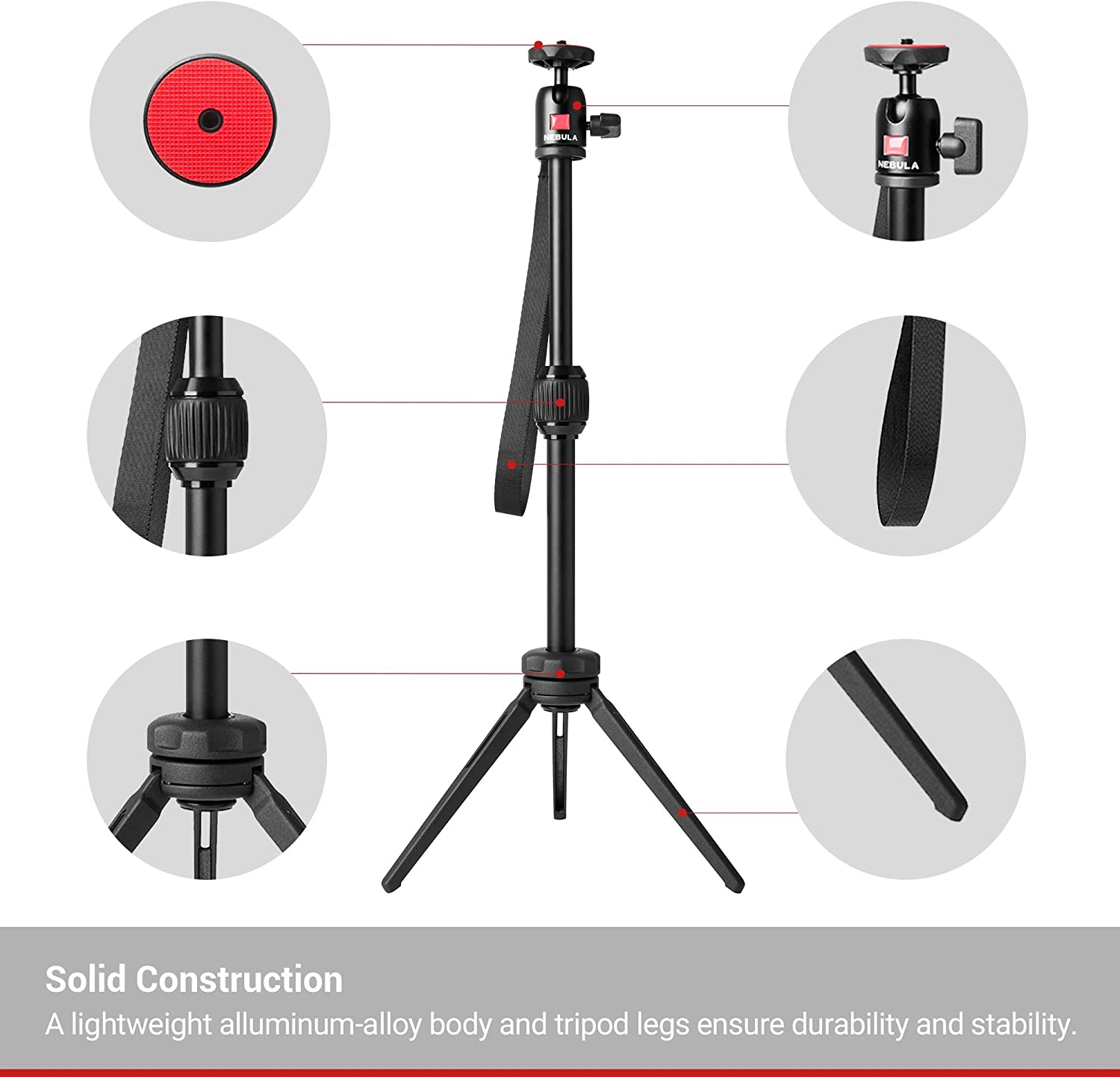 Anker Nebula Capsule Series Adjustable Tripod Stand, Compact, Aluminum Alloy Portable Projector Stand for Capsule, Capsule Max, and Capsule II with Universal Mount and Swivel Ball Head