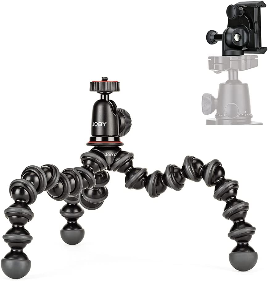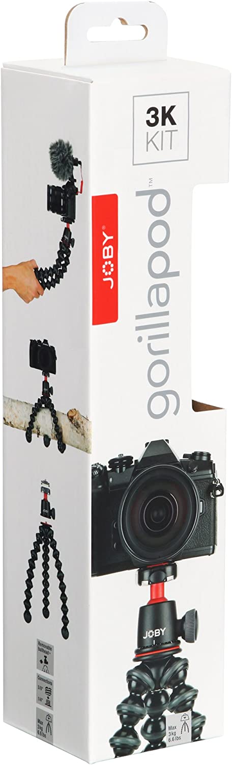 A lightweight and durable flexible tripod kit for content creators. This premium grade ABS GorillaPod 1K and compact BallHead 1K supports entry-level DLSRs, compact mirrorless cameras, and other devices weighing up to 1kg (2.2lb). It can be configured for photography, videography, vlogging, or live streaming in 3 modes: Grip It. Wrap It. Stand It. The included GripTight Mount PRO is the professional solution for mounting almost any smartphone with or without case. It attaches to the GorillaPod via the ¼-20Inches screw to offer a robust locking and rotating solution for mobile content creation. This kit is also a great way to view and enjoy your favorite content at home or on-the-go. For work, this combination can also be used for video conferencing or other work-from-home applications. Strong enough to support mirrorless cameras, smartphones, and devices weighing up to 1kg (2.2lb).