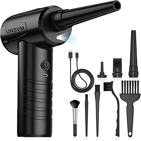 Air Duster, Efficient Electric Air Duster, Compact Rechargeable Cordless Compressed Air Duster, Quiet Air Blower, Portable 3-Gear Versatilie Dust Blower with LED Light for Keyboard Cleaning