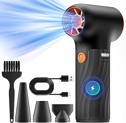 Mini Electric Air Duster, 320000RPM Powerful Blower Turbo with High Speed Fan, 3 Adjustable Rechargeable Cordless Jet Fan Air Blower, Compressed Air Duster for Computer Workbench Car (Black)