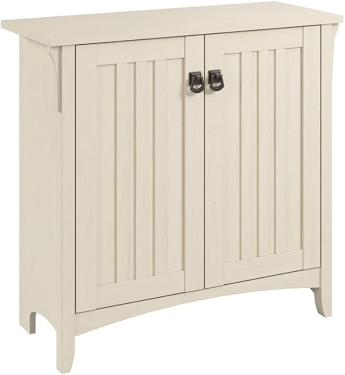 Bush Furniture Salinas Small Storage Cabinet with Doors and Shelves in Antique White, 2 Door Accent Chest for Home Office, Living Room, Entryway