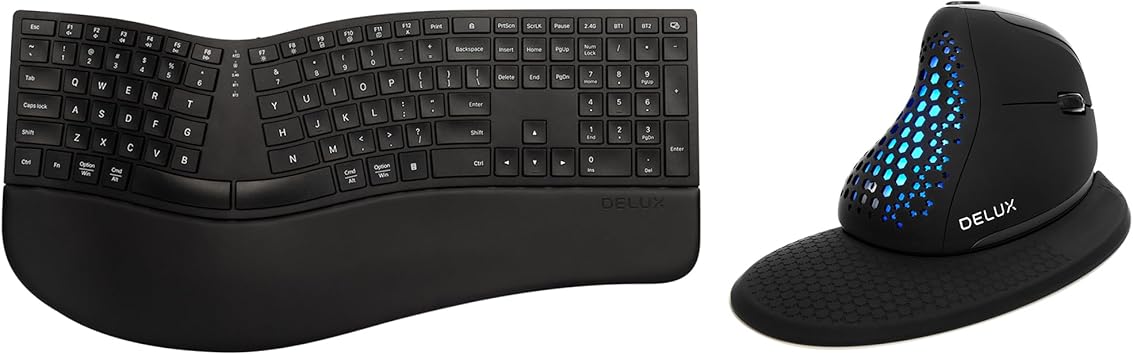 DeLUX Full Size Ergonomic Keyboard and Mouse Combo, Wireless Split Keyboard and Vertical Mouse with OLED Screen
