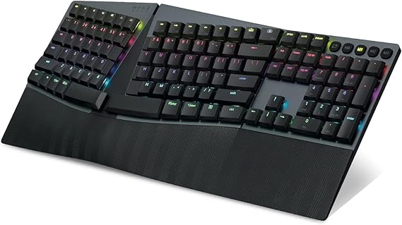 Perixx PERIBOARD-835BL Wireless Ergonomic Mechanical Keyboard - RGB Backlit - Low-Profile Blue Clicky Switches - Multi-Device Connection - Compatible with Windows and Mac OS X - US English