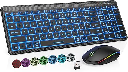 Wireless Keyboard and Mouse Bluetooth, Multi-Device Slim Portable Rechargeable Backlits Cordless Keyboard, Switch up to 3 Devices, RGB Silent Mouse, for iMac, iPad, iOS (Classic Black)